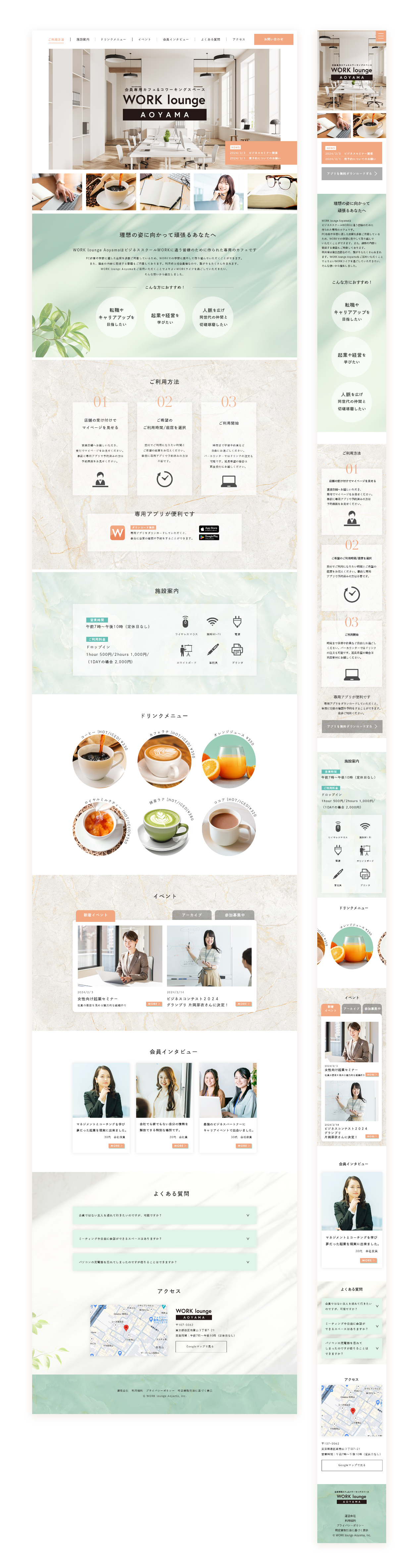 SHElikes MULTI CREATOR COURSEにてコワーキングスペース&カフェのLP制作課題に取り組みました。支給された初期ワイヤーフレームの改善、PC版のデザインカンプとS P版のワイヤフレームを制作しました。 ◼️制作日数:約2週間