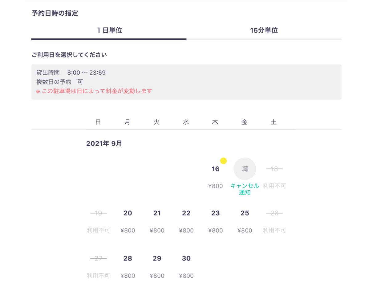 また、予約時間を過ぎても出庫されないトラブルへの対策として、別のセクションに記載されていた貸出時間をカレンダーと合わせて確認できるように変更しました。