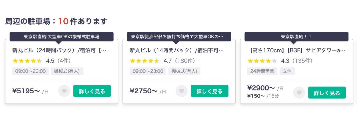 滞在時間が伸びるほどCV率が減る傾向にあったため、周辺の駐車場詳細ページとスムーズに行き来できるように変更しました。
