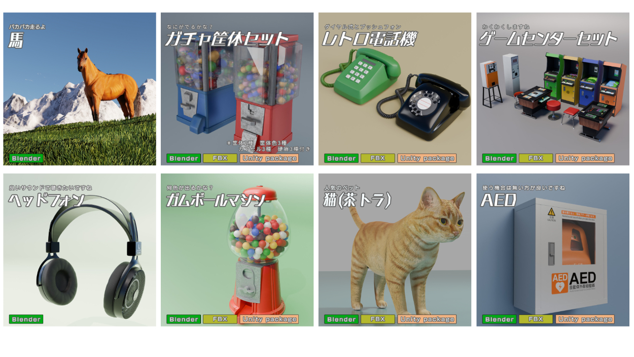 https://kenmko.booth.pm/ BOOTHにて販売している自作3Dモデル