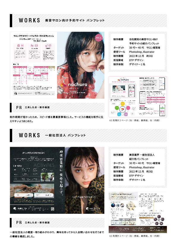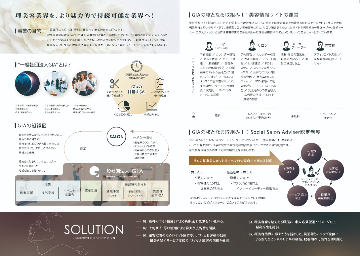 主に美容室経営者や美容関連者に説明を行う資料のため、わかりやすく見た目にもきちんと作りこまれた内容のものを制作しました。