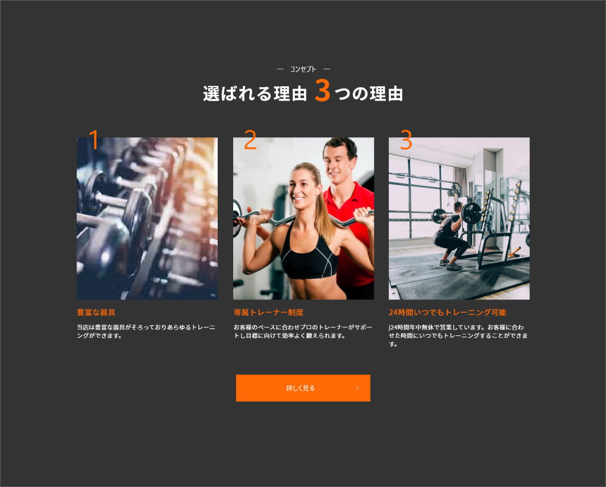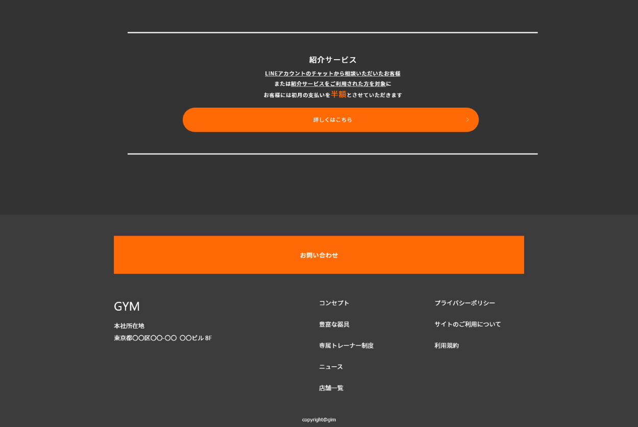 - ファーストビューからは、ジムのサイトだとわかりやすく