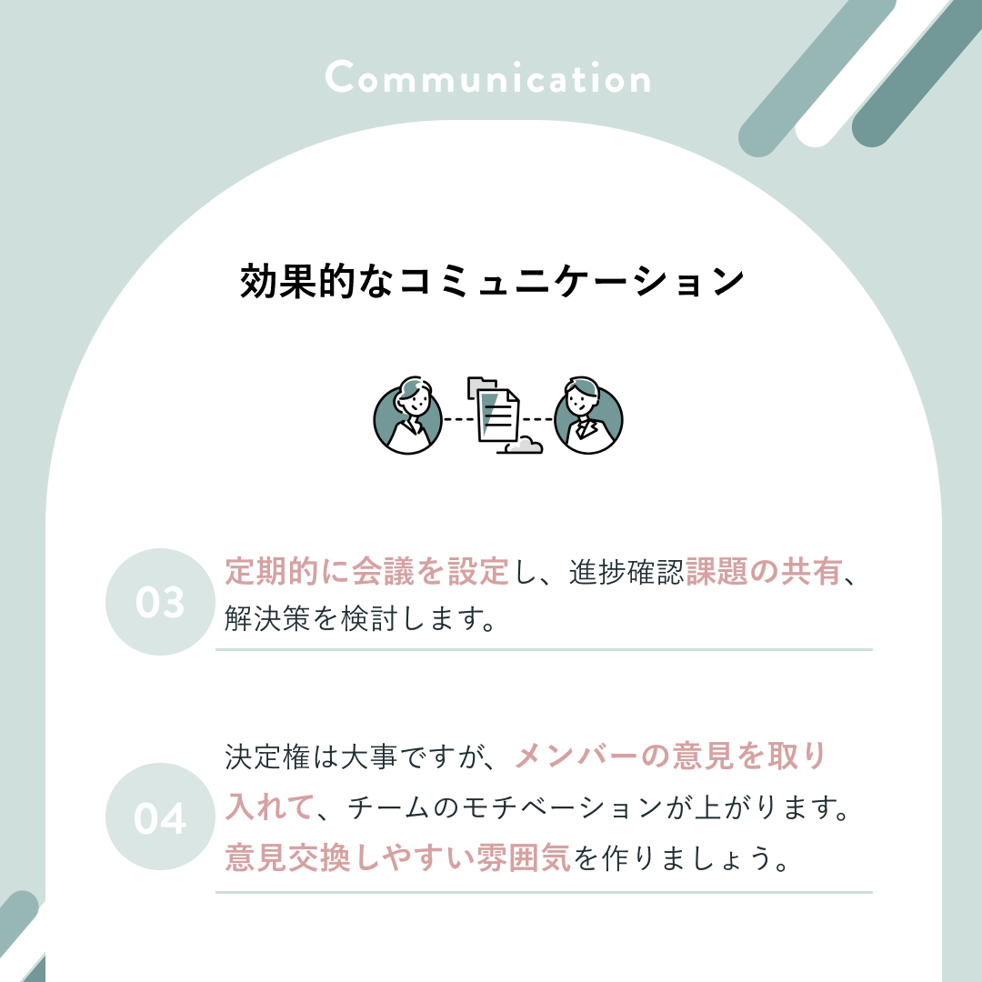 ④角を丸くした線飾りをあしらい、シンプルながらも色は薄いトーンから濃いトーンへ