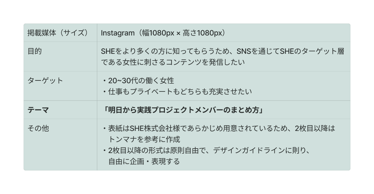 SHE株式会社様のInstagramに投稿するクリエイティブを制作し、コンペ形式で採用されました。