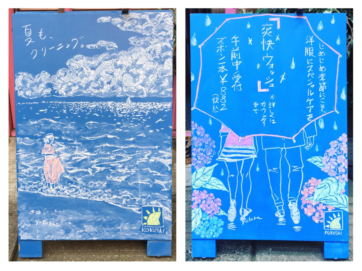 国際クリーニング神楽坂店の店頭に置く立看板のイラストデザイン。