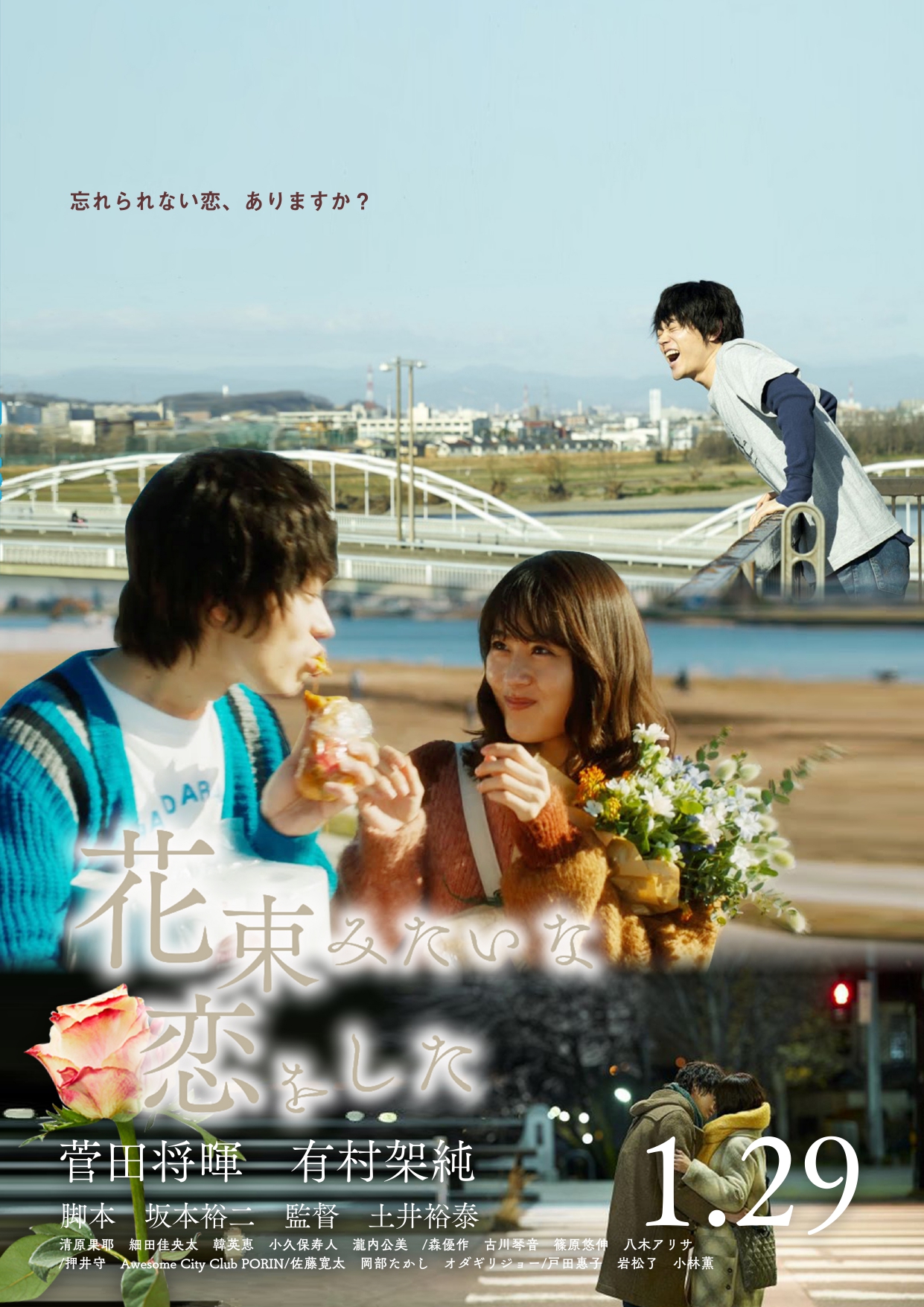 スクールのPhotoshop最終課題で、「花束みたいな恋をした」の公開を想定した映画フライヤーを作成しました。全てPhotoshopで作成しました。