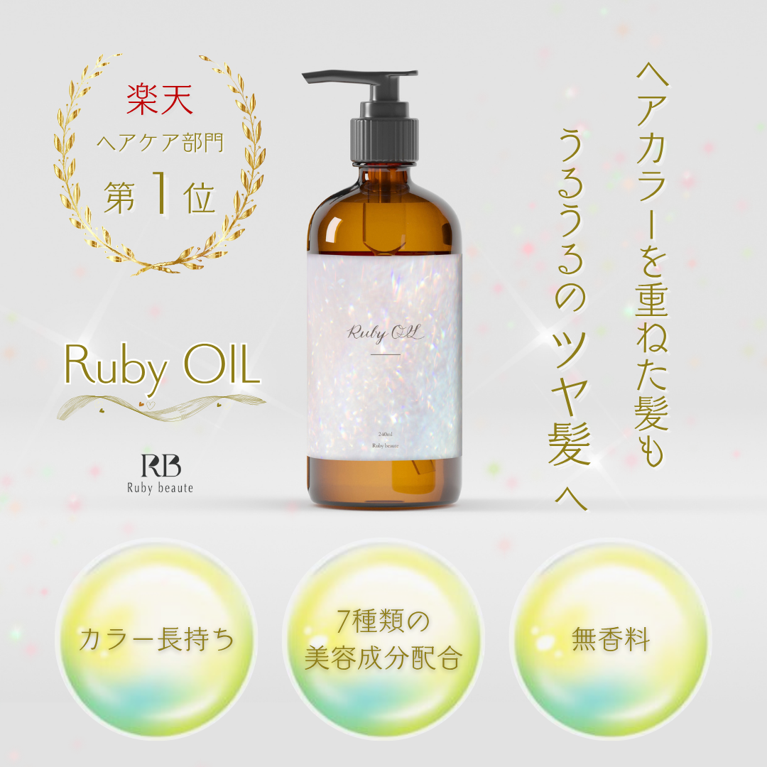 Ruby OILはヘアカラーを楽しむ方のお悩みに寄り添ったヘアオイルとして開発されました。 ヘアカラーで傷んだ髪のパサつきを、潤いのある滑らかなツヤ髪へ導きます。 保湿美容成分を7種類配合しており、傷みのケアはもちろん、カラーの色持ちも良くしてくれます。 普段の生活やリラックスタイムにも気にならない無香料。