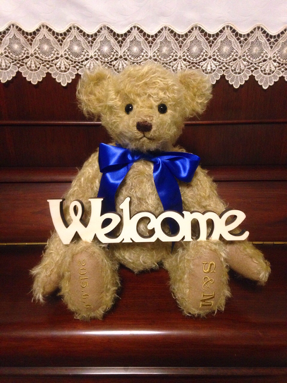 テディベア好きの友人の結婚式のために制作したウェルカムベアーです。