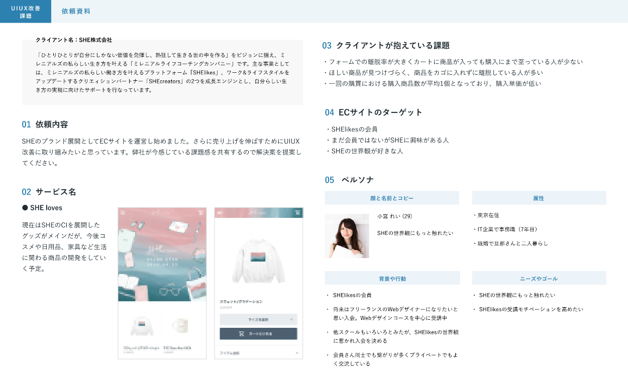 既存のECサイトの課題解決に向けて、UI/UX改善取組みました。提案資料の制作まで行いました。【SHElikes MULTI CREATOR COURSE 課題】