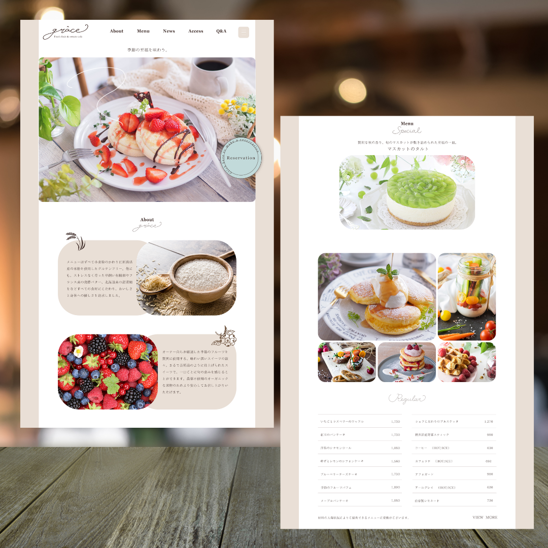 Fresh fruit&Sweetsカフェ”grâce”のWEBサイト