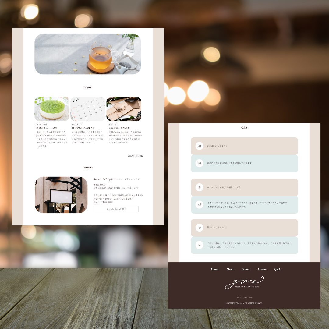 カフェgrâceのこだわりを2セクションに分けて紹介しました。