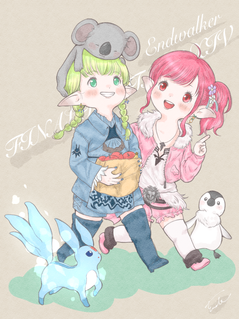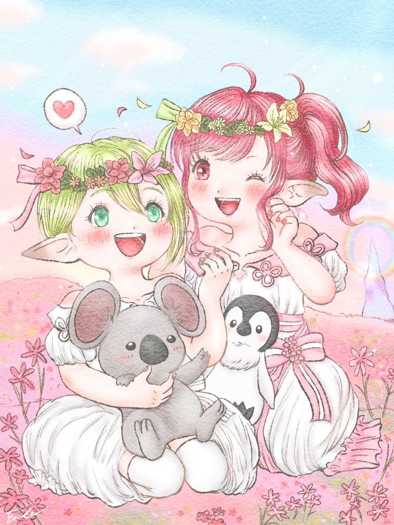 ゲームで登場した耳が可愛かったので、ペア画にして描きました。