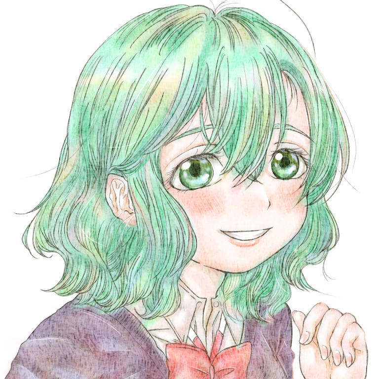 緑色が好きなので、髪の毛と目の色は緑色です!