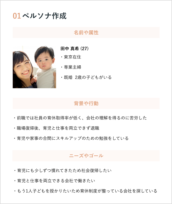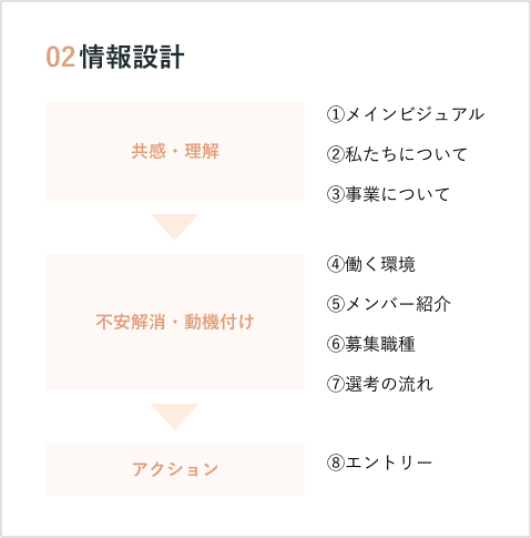 選考の流れや面接の回数を明確に示すことでペルソナの不安を軽減しました。