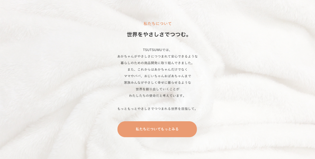 ・「コンセプト」セクションでタオルの写真を使用し「やさしさ」を演出