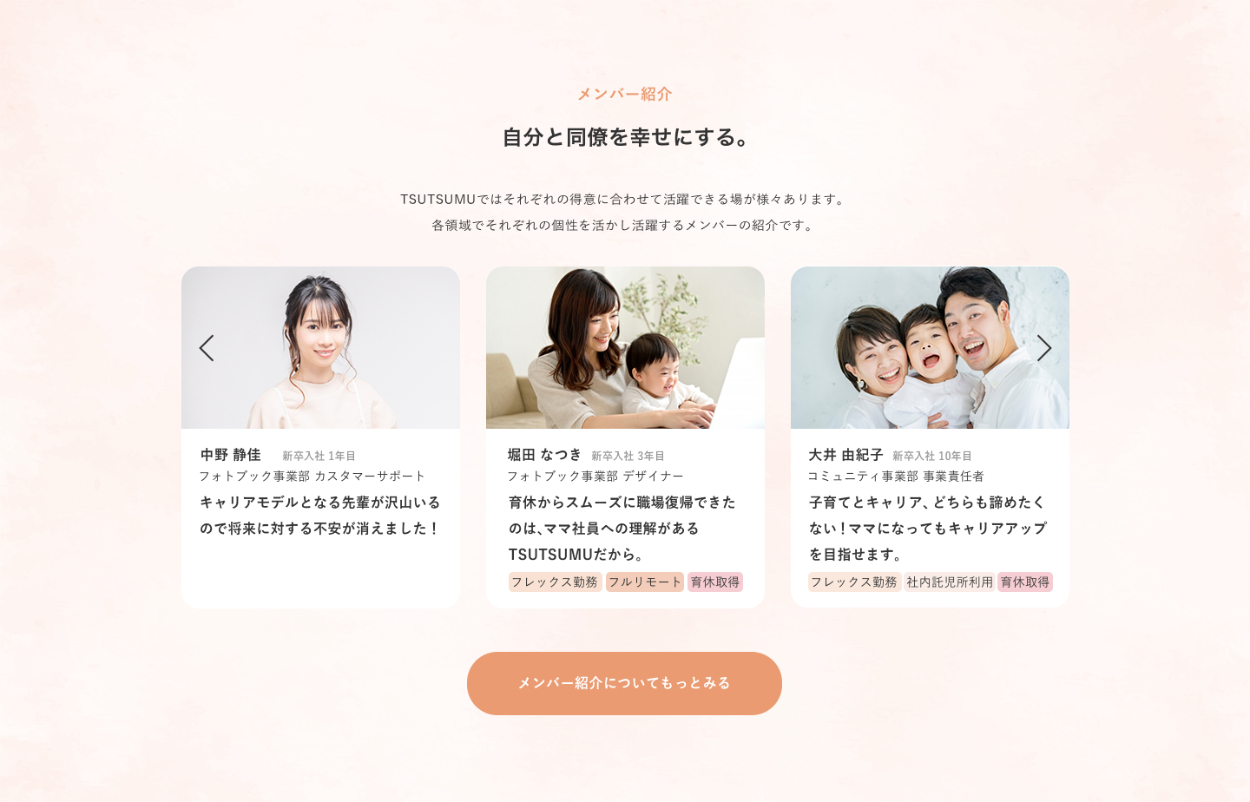 ・「メンバー紹介」セクションで子どもと写っている写真を使用し、