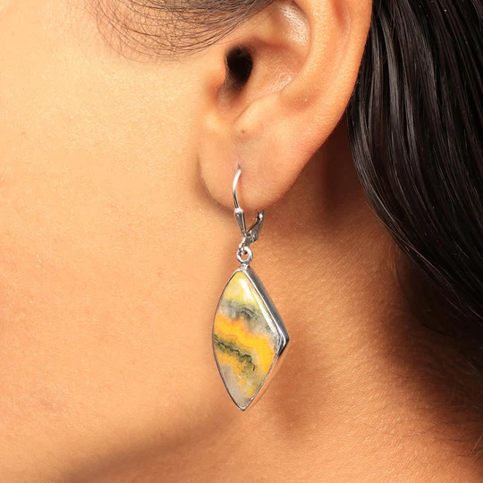 Take your levels of creativity to new heights and unleash your inner artist with Sagacia Bumble Bee Jasper jewelry . This jewelry is crafted out of pure hypoallergenic 925 sterling silver and it is also plated with rhodium so its shine remains intact for a long time to come. Each piece features 100% genuine and authentic bumble bee jasper gemstone having striking and vibrant patterns. This gemstone will awaken your inner artist in no time and this stone is well known within the spiritual community for its energizing and motivational properties. The unique pieces of Sagacia's Bumble Bee Jasper jewelry will allow you to make a bold statement anywhere you go. Buy our Bumble Bee Jasper jewelry now and wear it on your next adventure to see its charm.