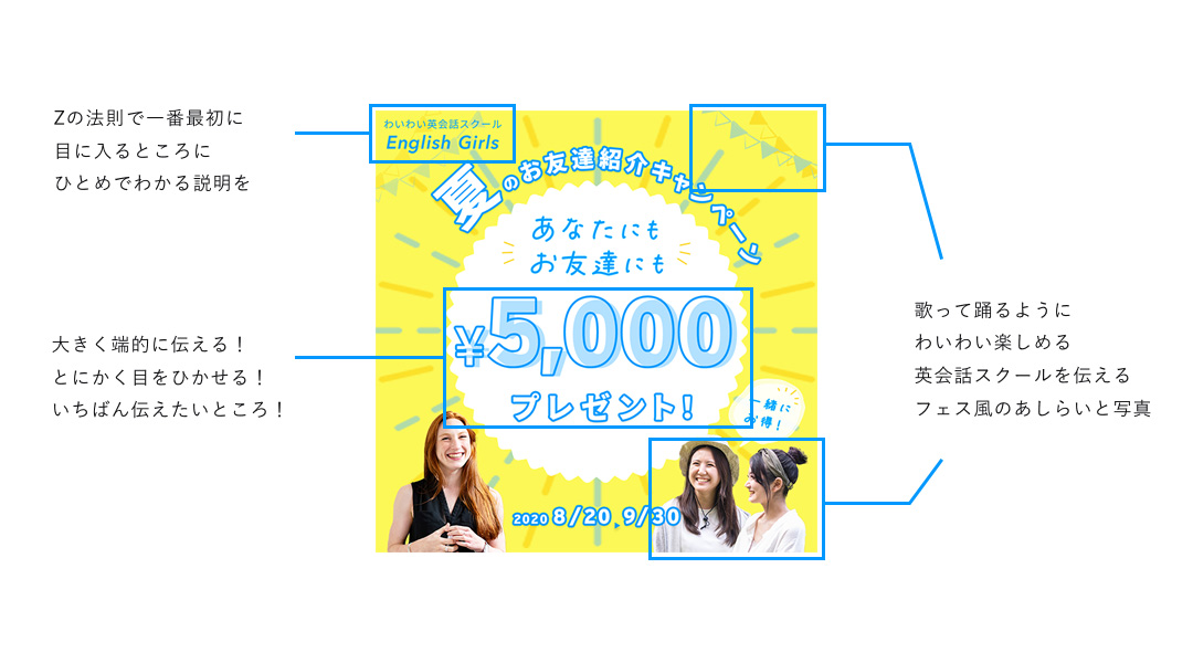 SHElikes MULTI CREATOR COURSEの課題でバナー制作に取り組みました。英会話教室からキャンペーンのバナー制作依頼を受けたという架空の設定で制作しました。(使用ツール:Photoshop)