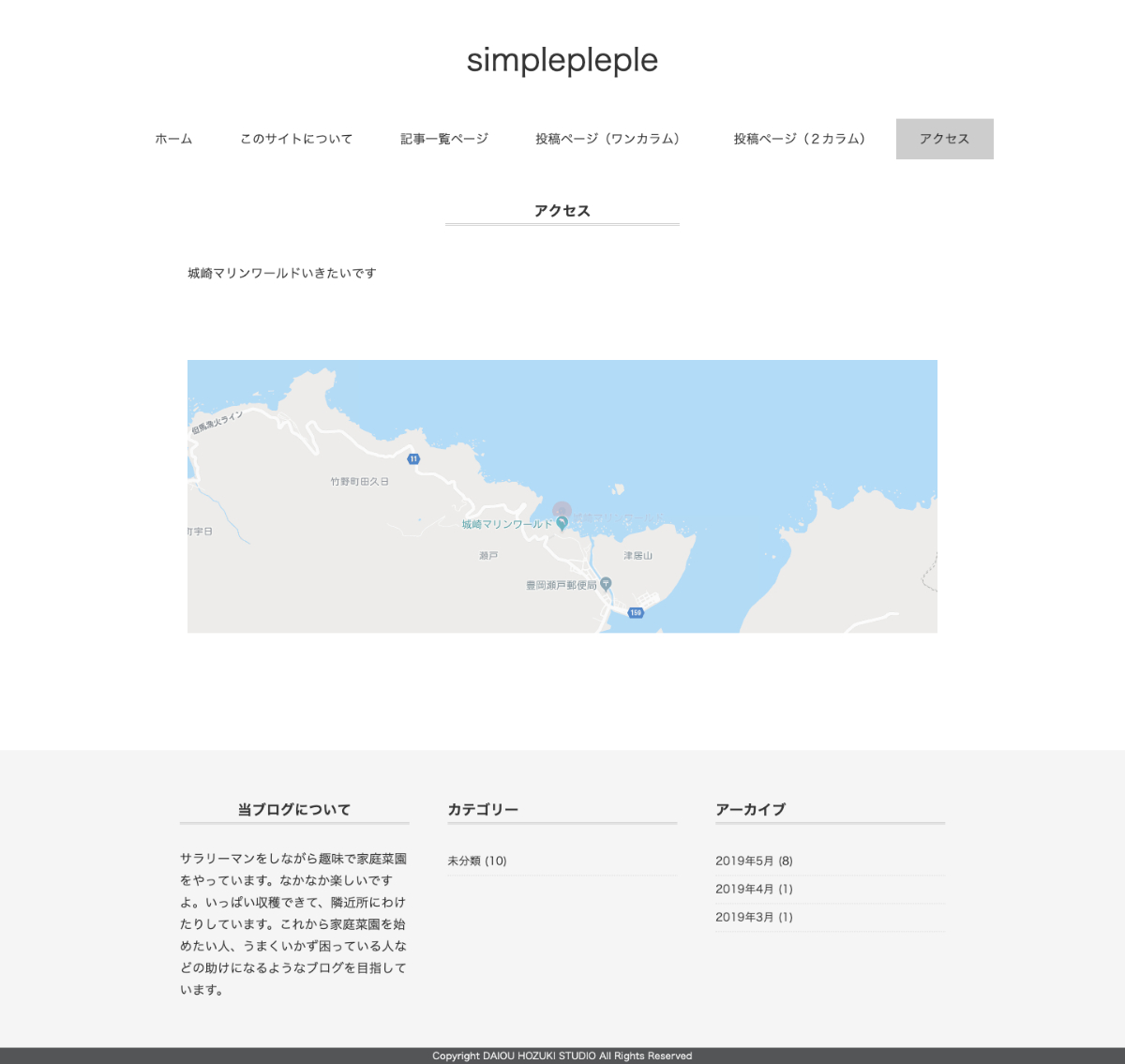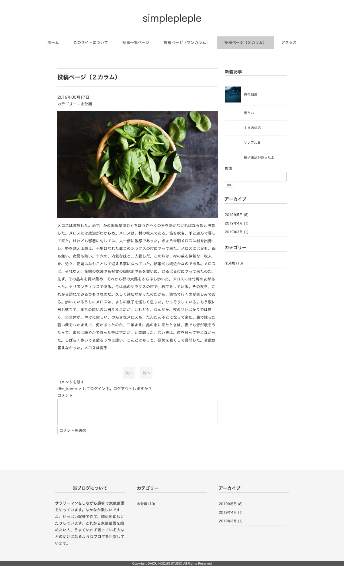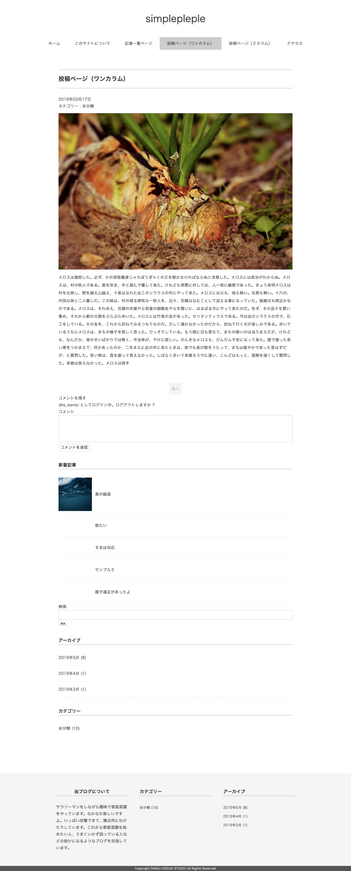 wordpressにて制作しましたシンプルなサイト「simplepleple」です。
