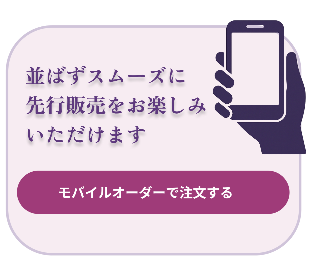 フラッペ紹介セクションの下に**「モバイルオーダー」導線を設置し、商品閲覧から購入までを自然に繋ぐ流れ**を意識しました。 スマートフォンを手にしたアイコンを配置することで、操作イメージを直感的に伝え、誰でも簡単に注文できる印象を演出しています。 また、深紫×ホワイトのブランドカラーを基調に、ボタンにはアクセントカラーのベリーパープルを使用することで、視線が自然にCTA(行動ボタン)へ導かれるようデザインしました。 全体を柔らかな曲線と淡い影でまとめ、Noir Berryらしい上品さを保ちながらも、使いやすく温かみのあるUIに仕上げています。