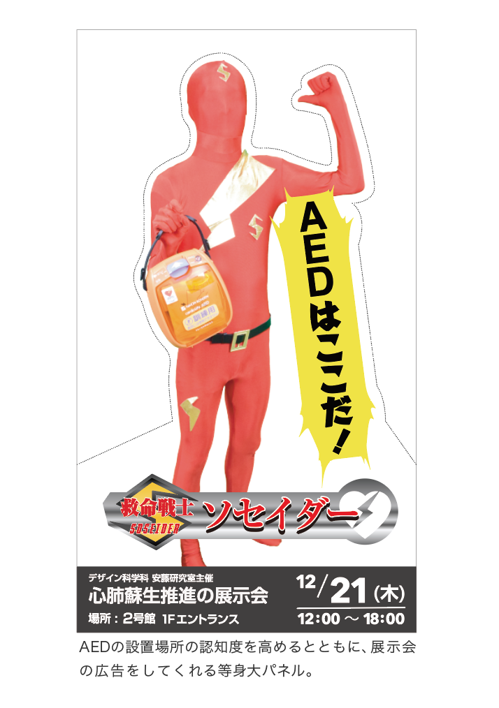 今回の目的として展示会でCPRに関して少しでも関心を持ってもらうことが目的だった。ソセイダーのおかげでキャンパス内のAEDの位置を把握してくれる人も少しだが増えた。
