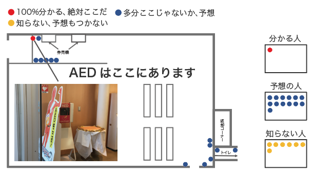 結果として、AEDの位置を知っている人は1人しかいなかった。