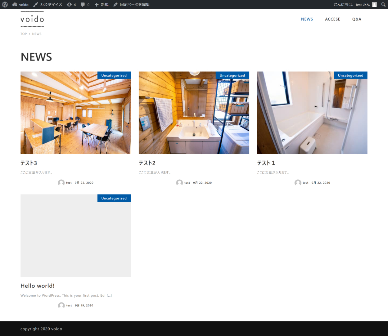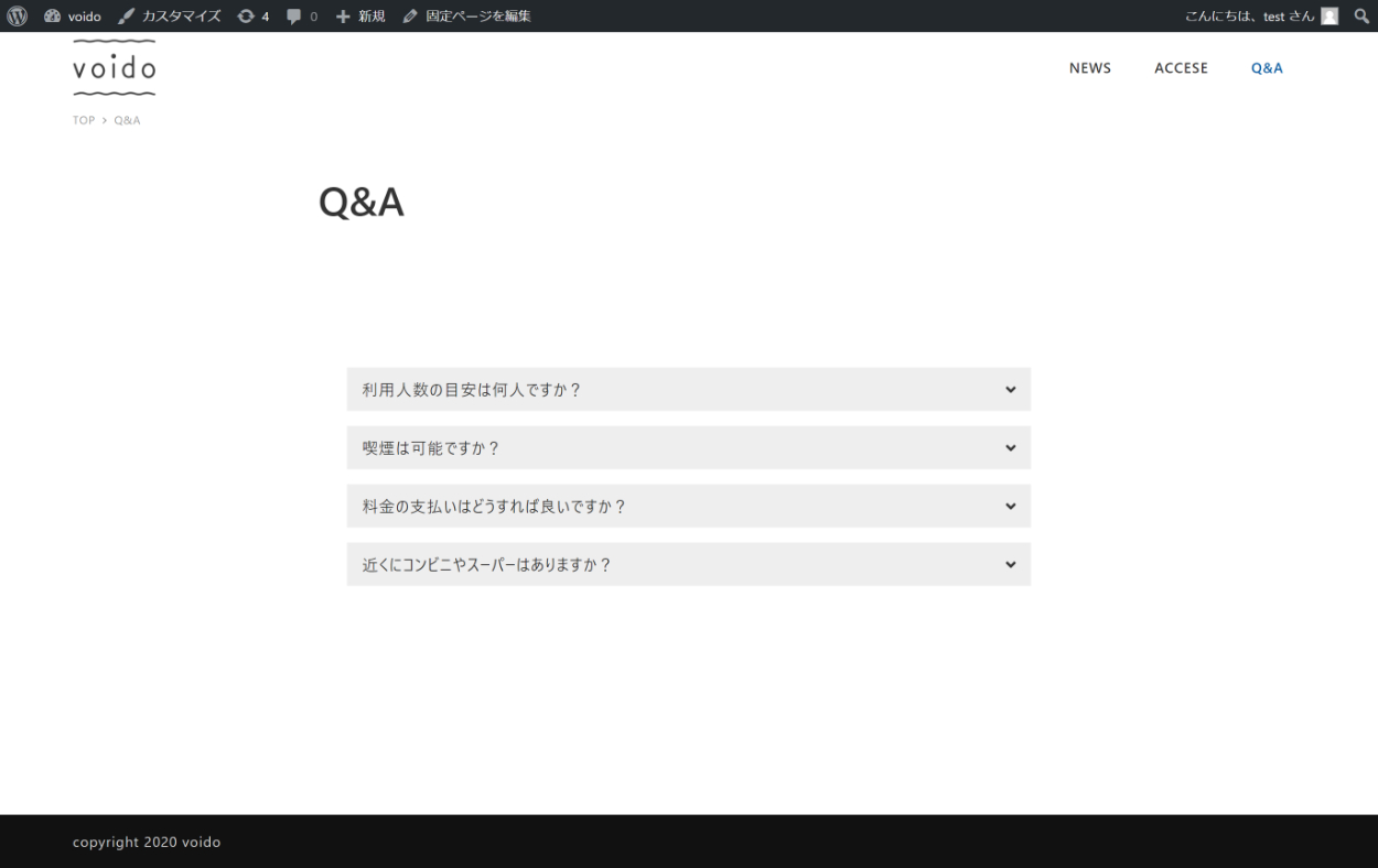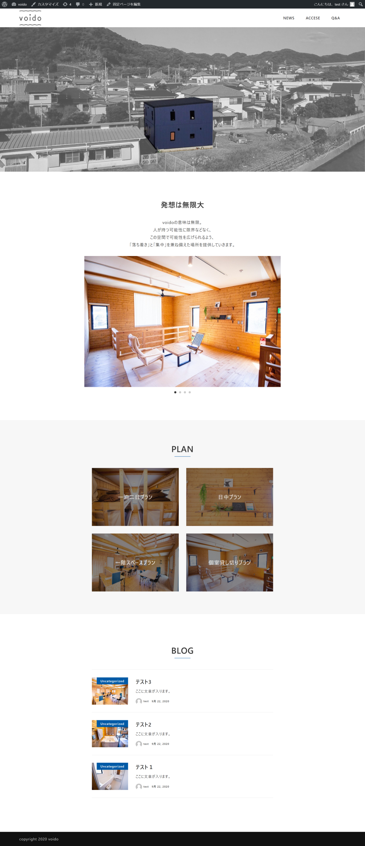 合宿向け宿泊施設のホームページ トップページ(施設概要・利用プラン・最近の投稿) +ブログ +アクセス(地図埋め込み) +Q&A