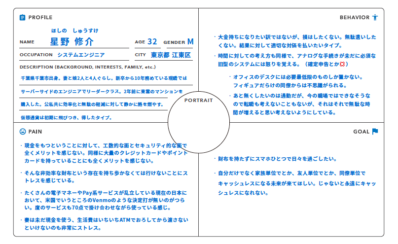 電子マネーやPay系のサービスを掛け合わせながら使っている比較的リテラシーの高いペルソナにとって、現金を手放すのに一番ネックになっている問題は「ペルソナの周りの人間(妻や友人)が現金派」ということでした。