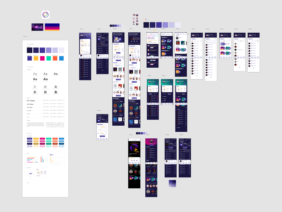 好みの音楽と出会えた時の嬉しさとそれを見つけるまでのワクワク感を増幅させるようなデザインにしたかったため、彩度の高い未来感のある色構成で楽しげな雰囲気にしてあります。