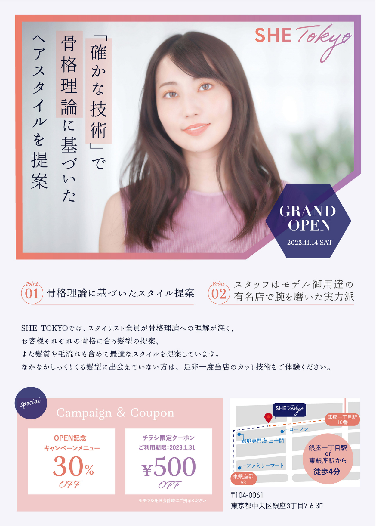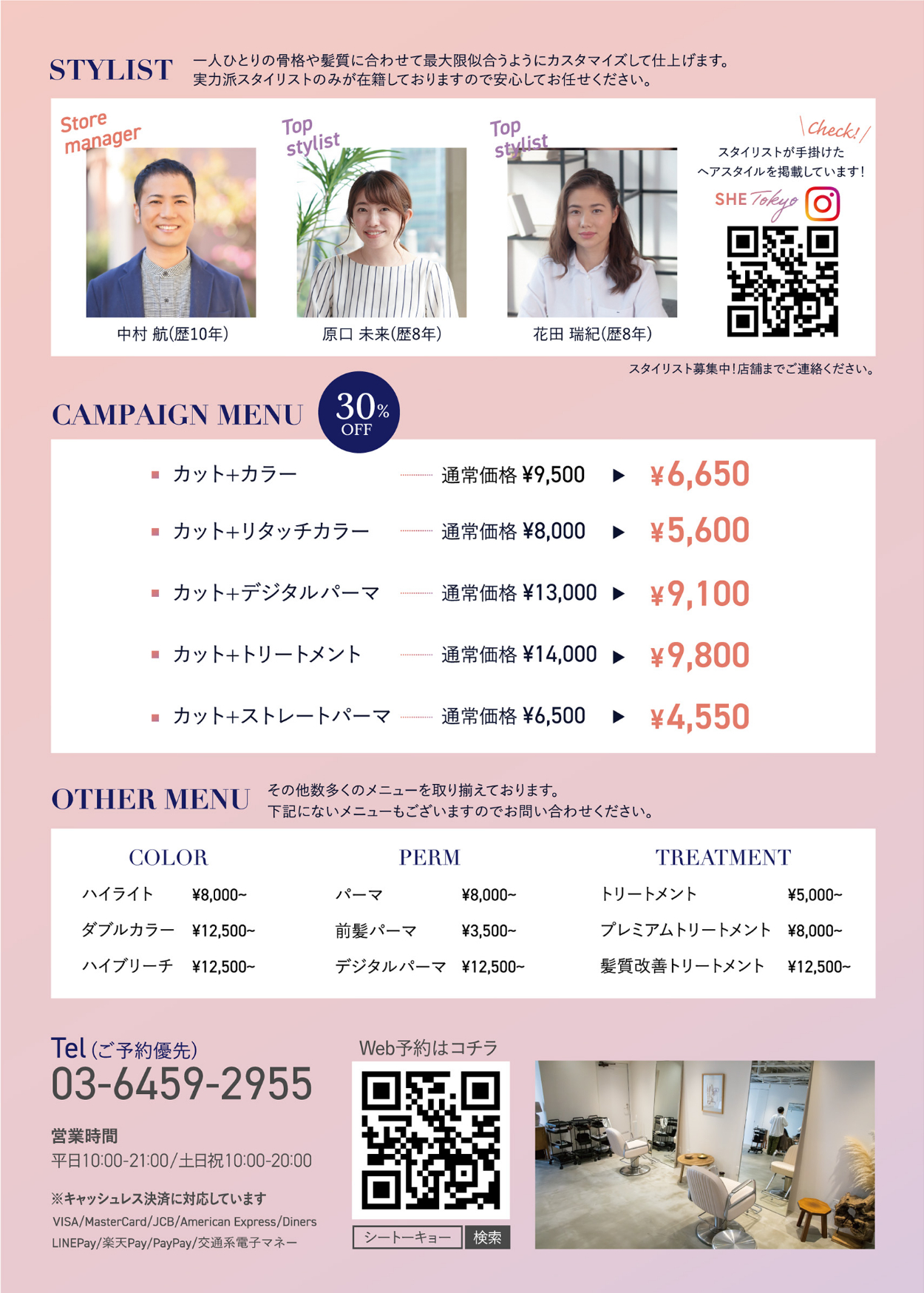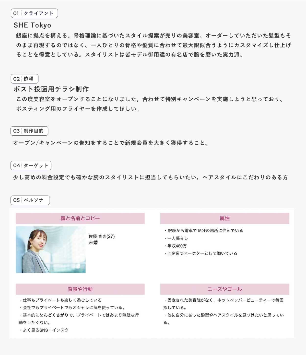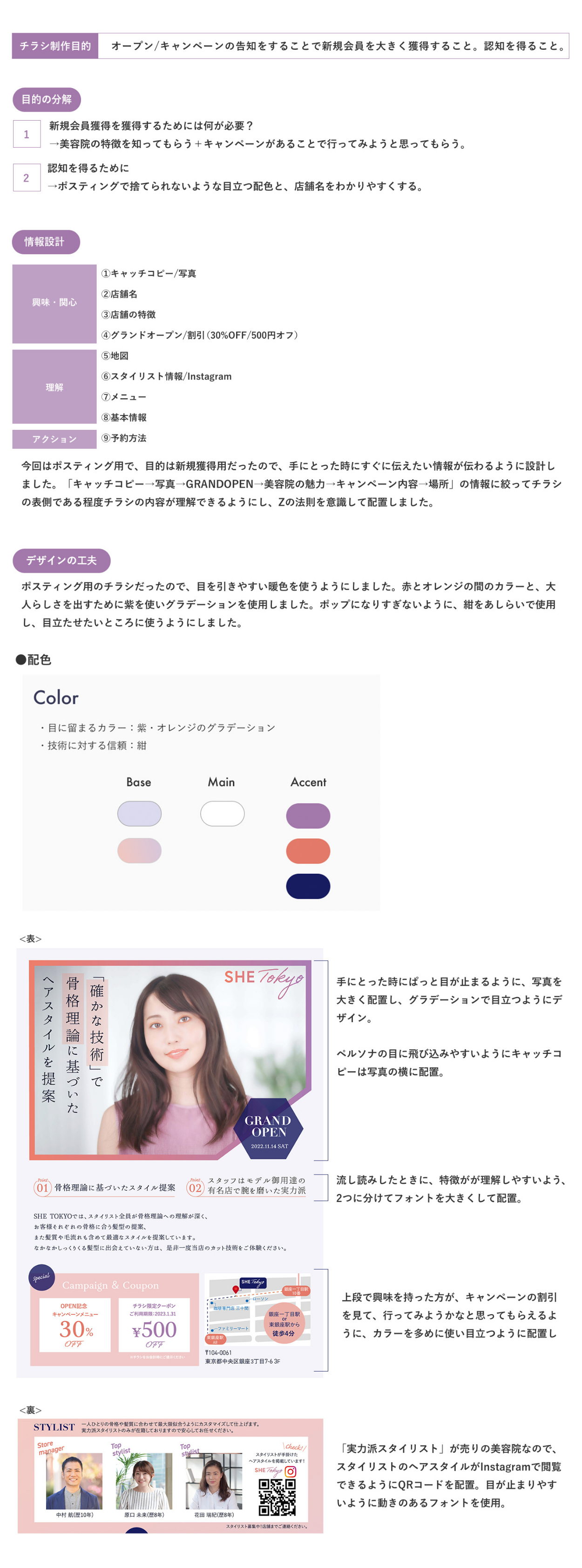 SHElikes MULTI CREATOR COURSEの課題で、新規オープンした美容院のポスティング用フライヤーに取り組みました。