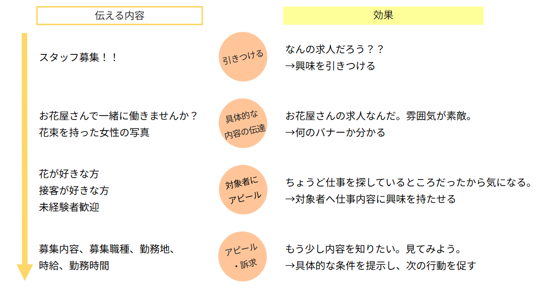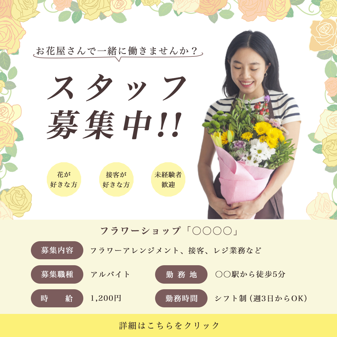 ・ターゲットの興味を引きつけるため 、「お花屋さんで一緒に働きませんか?」という