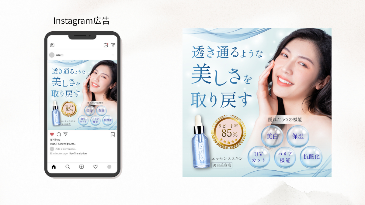 Instagram広告で配信する美容液の認知拡大・購入を促すバナー。
