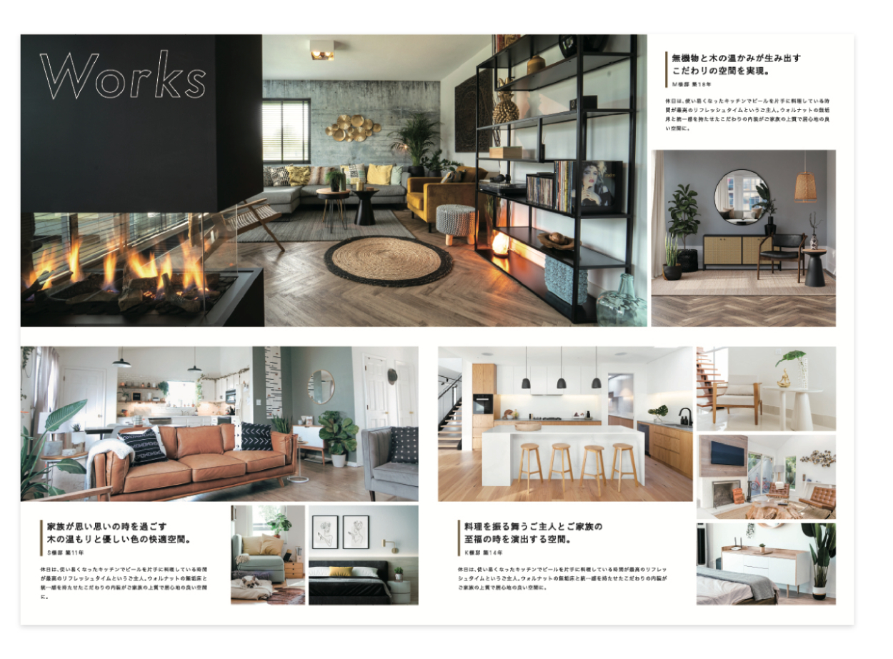 - 中面は、施工事例の写真とテキストが読みやすいように、白背景でシンプルにデザインしました。