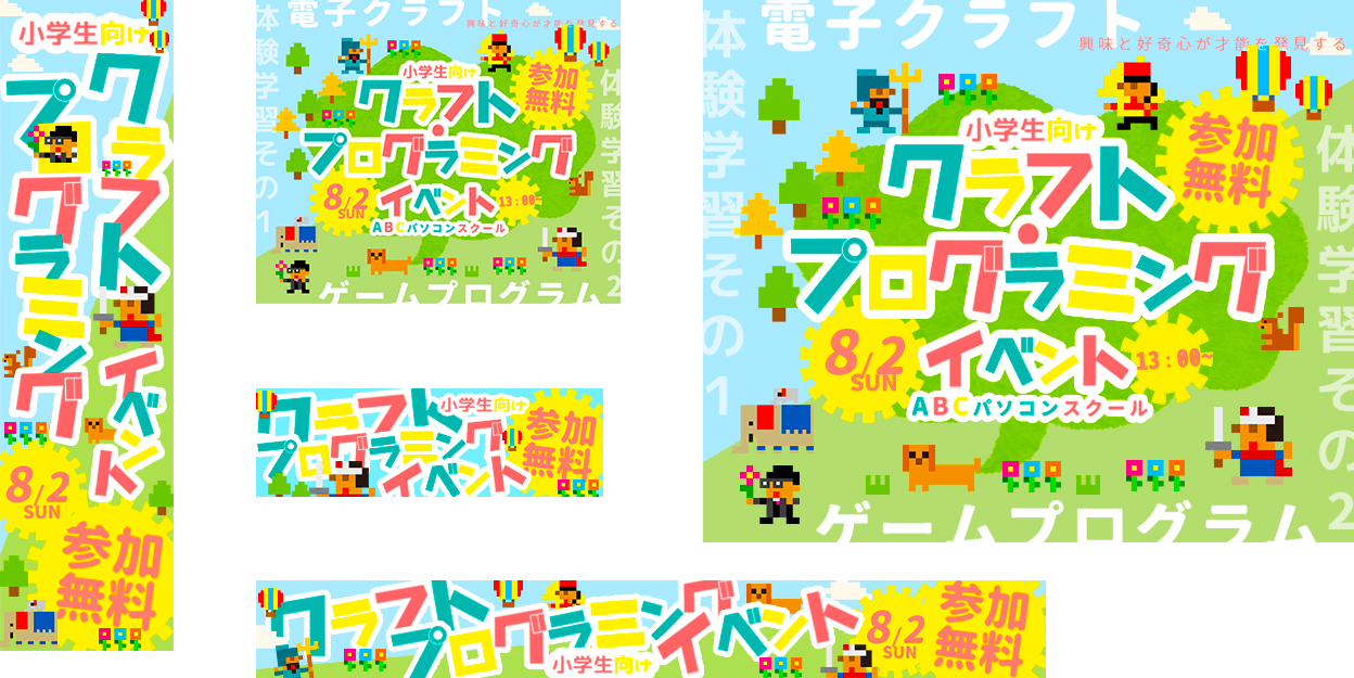 プログラミングに興味を持つ小学生や、勧めてくれる親や先生に向けたバナーがいいのではと思いました。