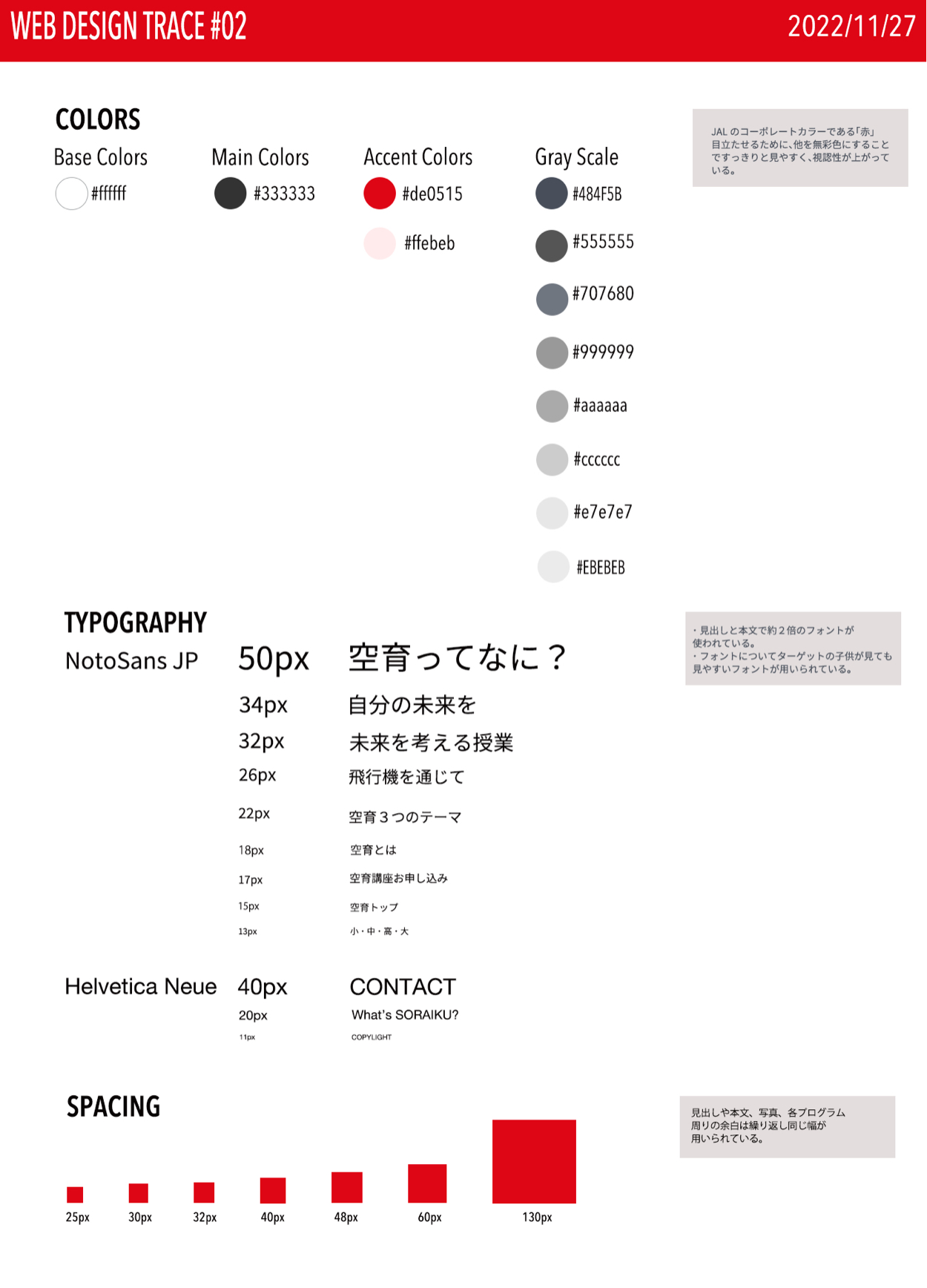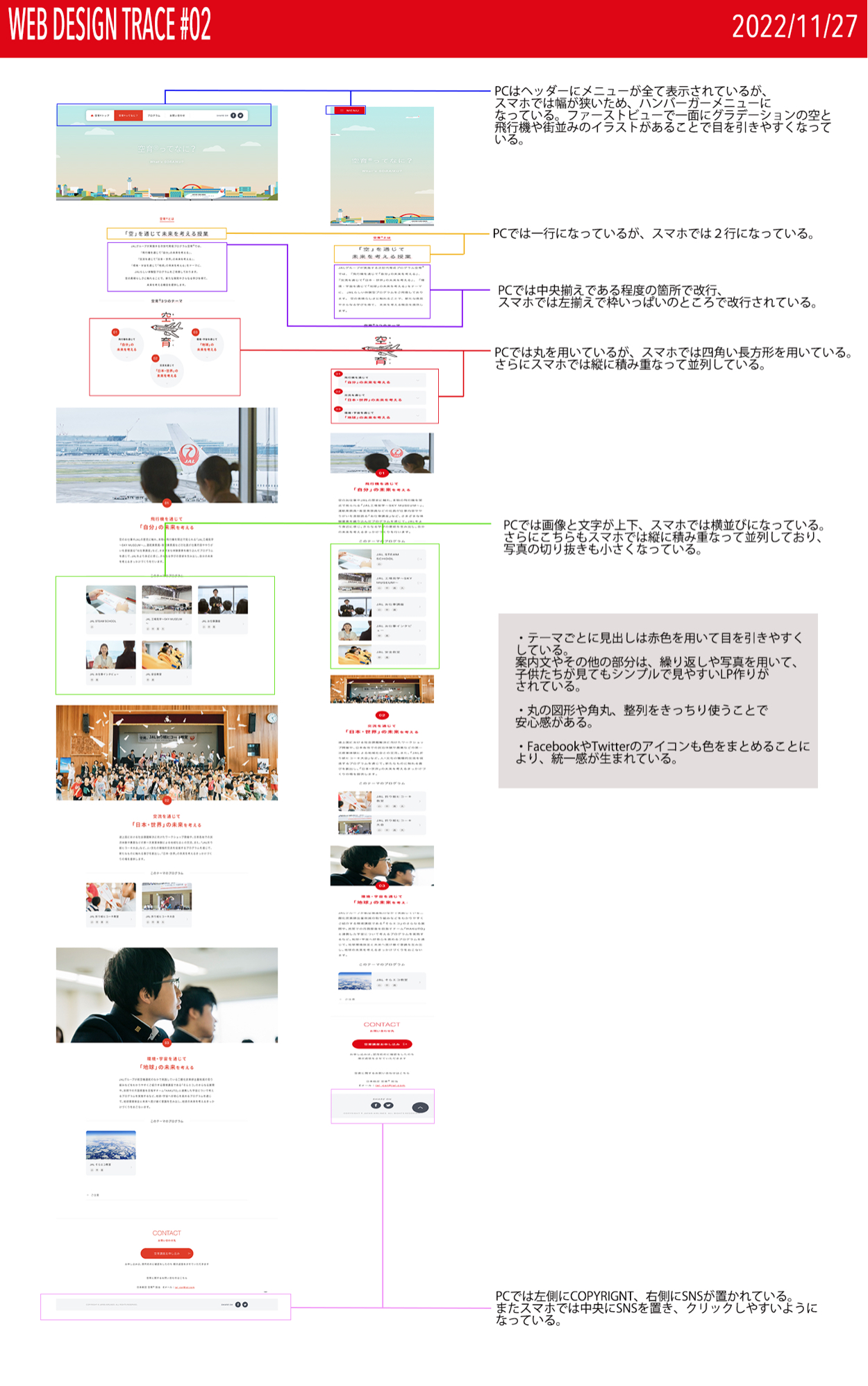 SHE likes MULTI CREATOR COURSEの課題で、「空育(JAL企業サイト)」のLPトレースに 取り組みました。 トレース・スタイルシート作成・PCサイトとスマホサイトのレイアウト分析まで行いました。