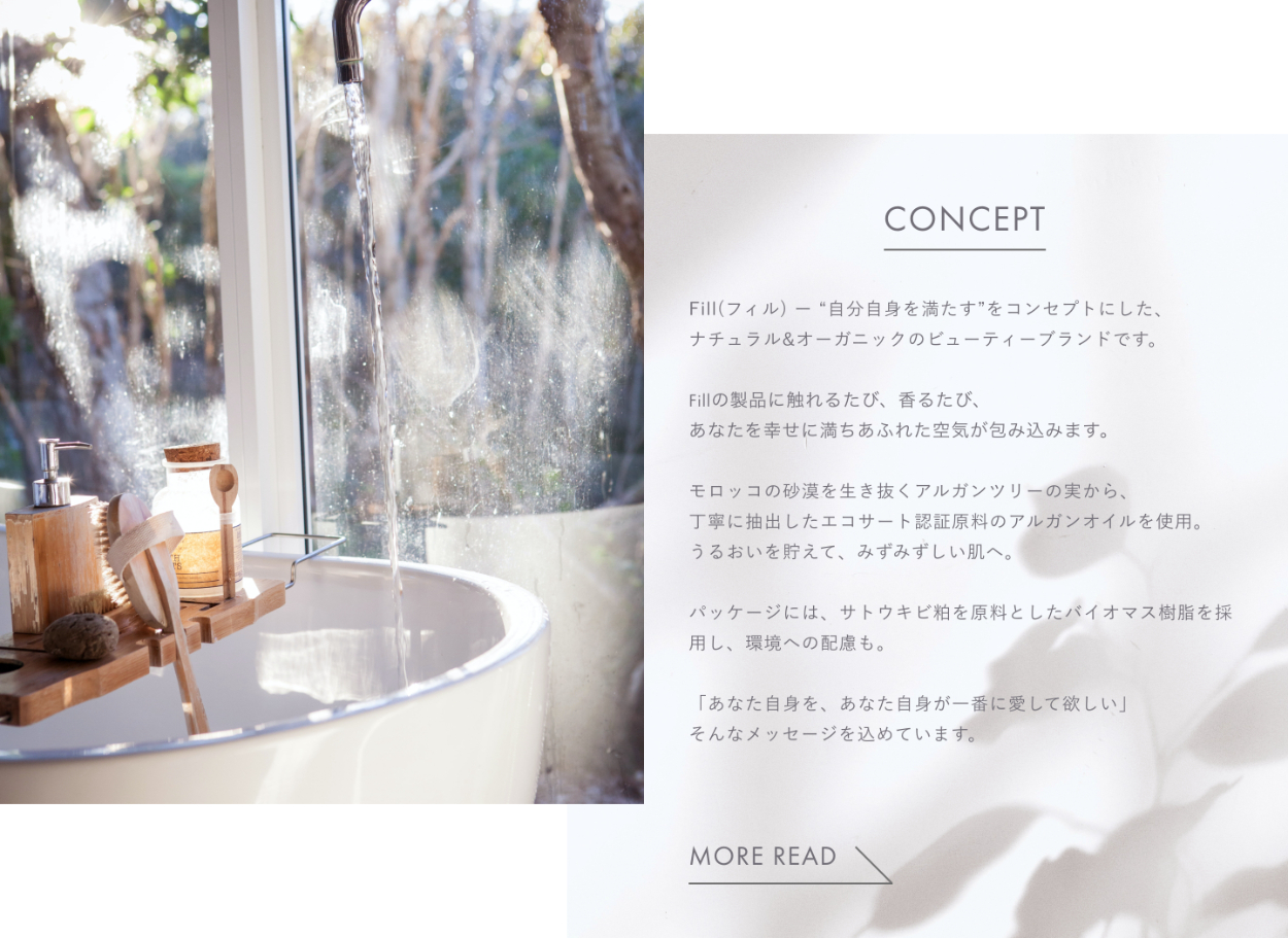 FVは、ナチュラル・オーガニックとオイルが人気なブランドという想定なので、「クリーン」なイメージの画像を選んでいます。また、離脱を防ぐために、実装では複数枚の画像が流れるようにします。