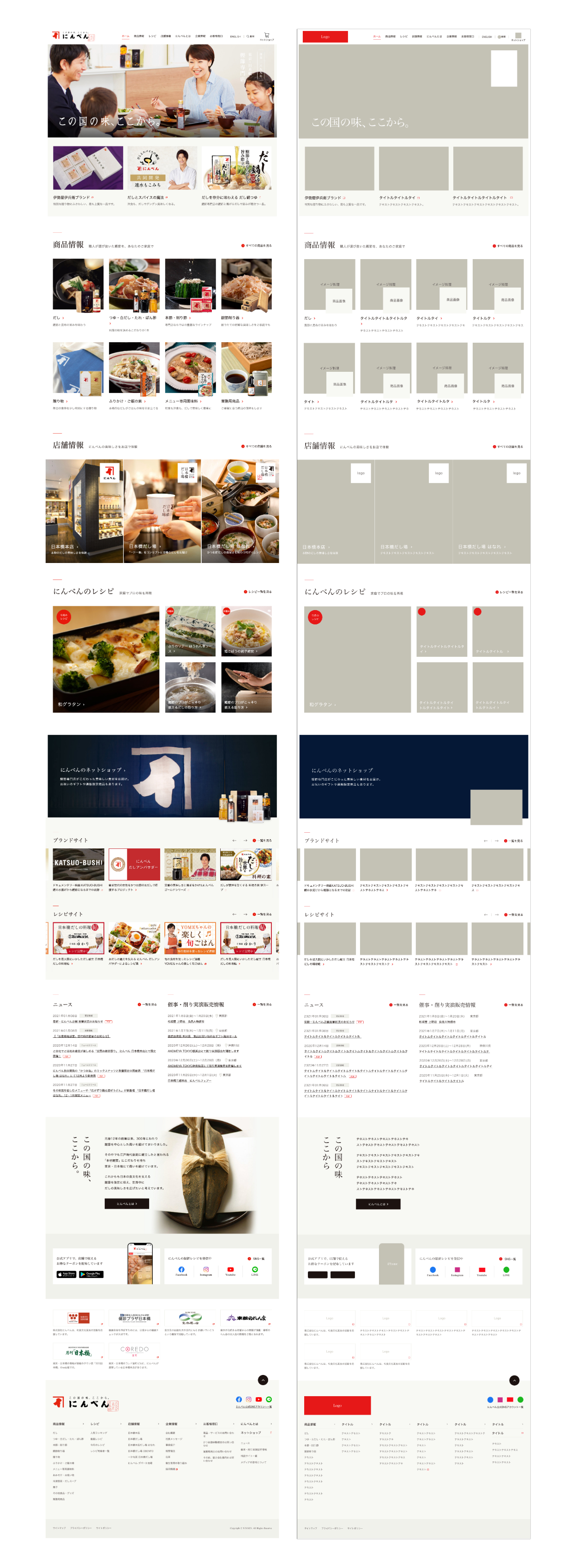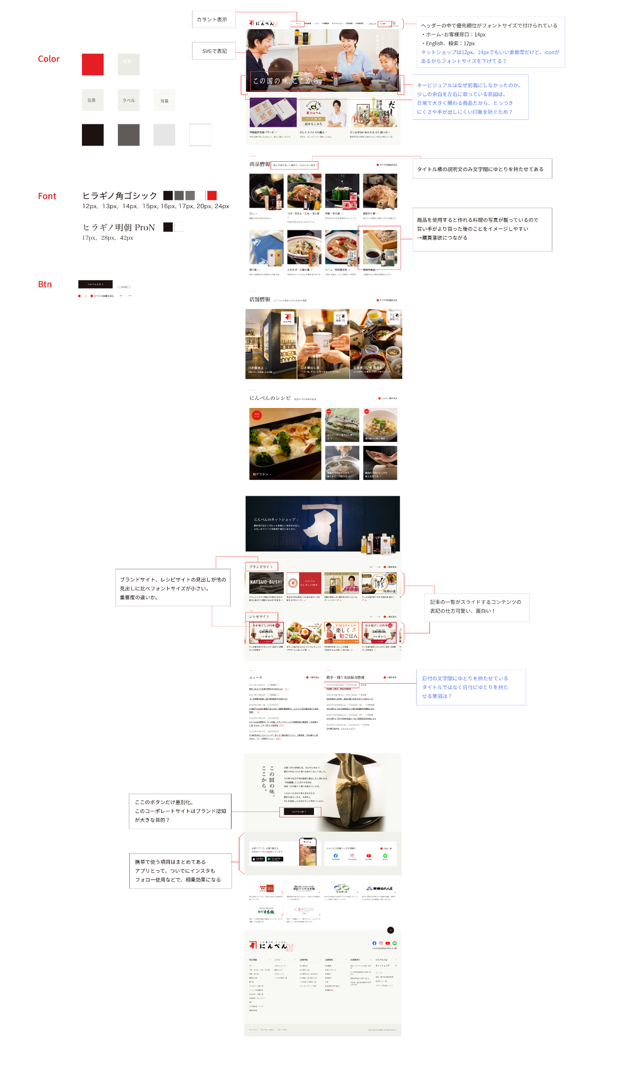 トップページだけ見るとECサイトへの訴求が弱いように感じたが各下層ページに飛ぶと、レシピに使用している商品や紹介ブランドの商品のECサイトへの導線など、全ての下層ページにECサイトへの導線があり、強く訴求されていることがわかった。よくあるLPのようにトップページに何度もECサイトへの訴求があると、にんべんのブランドイメージとそぐわない。