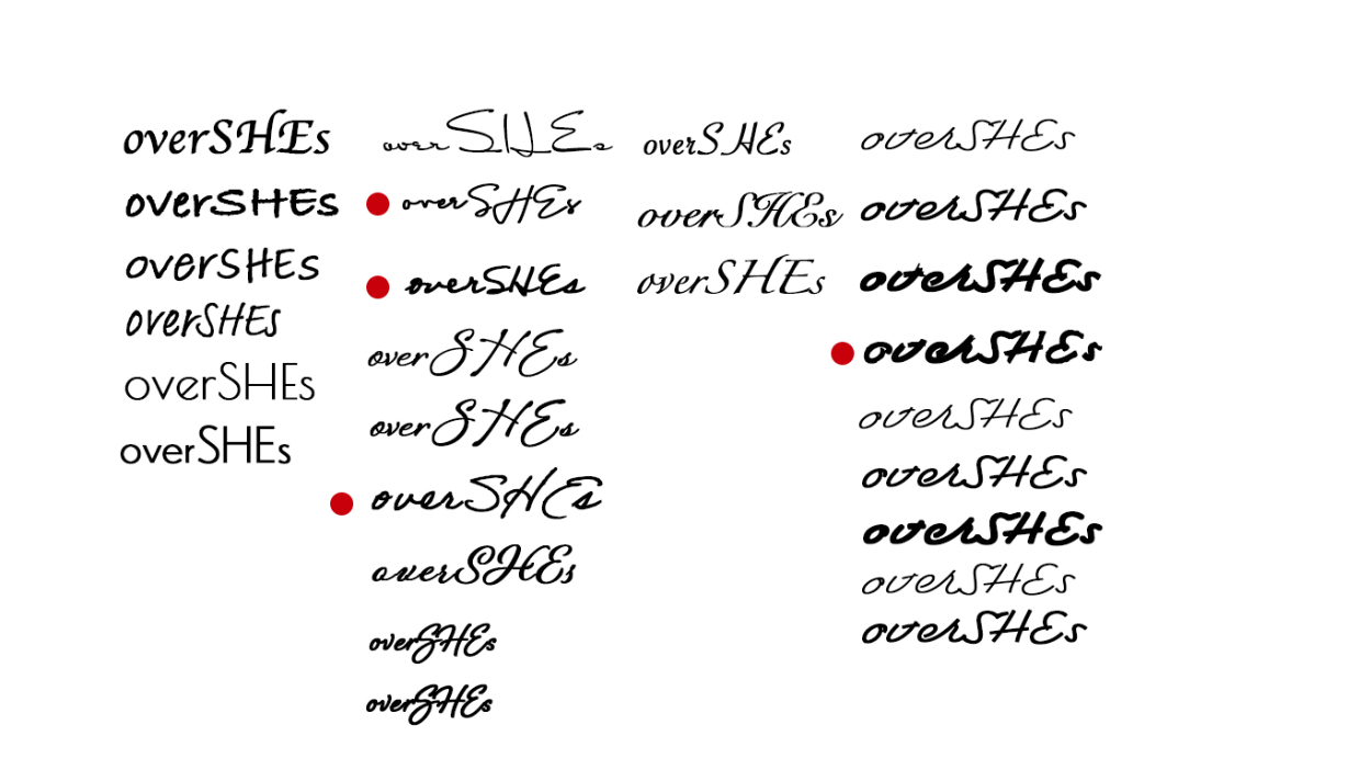 - フォントに「overSHEs」を入力して並べる