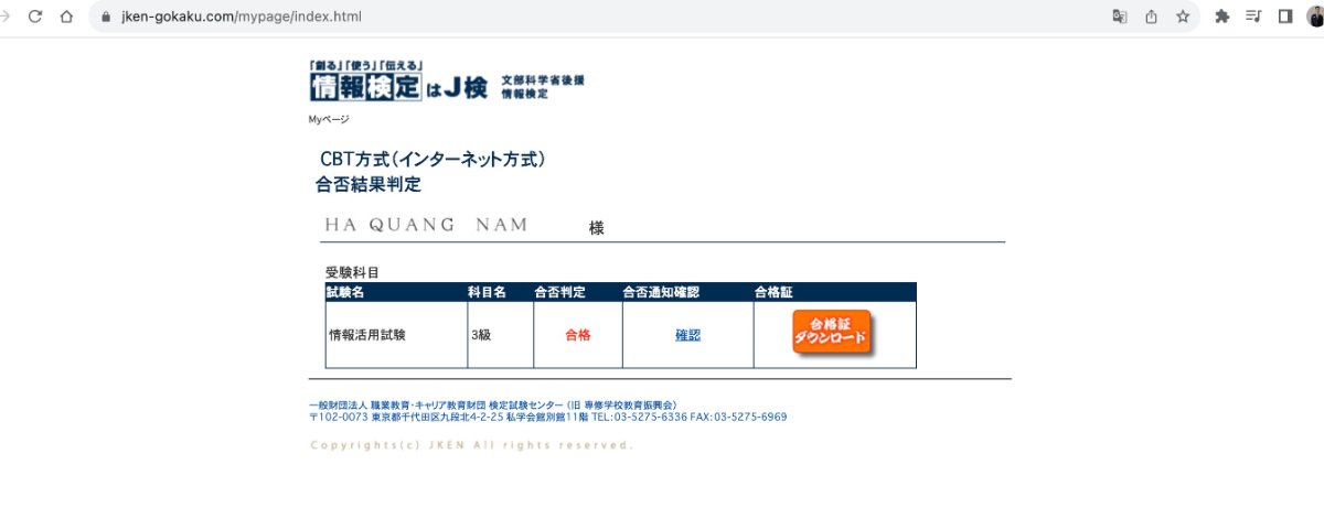 J検3級に合格できました