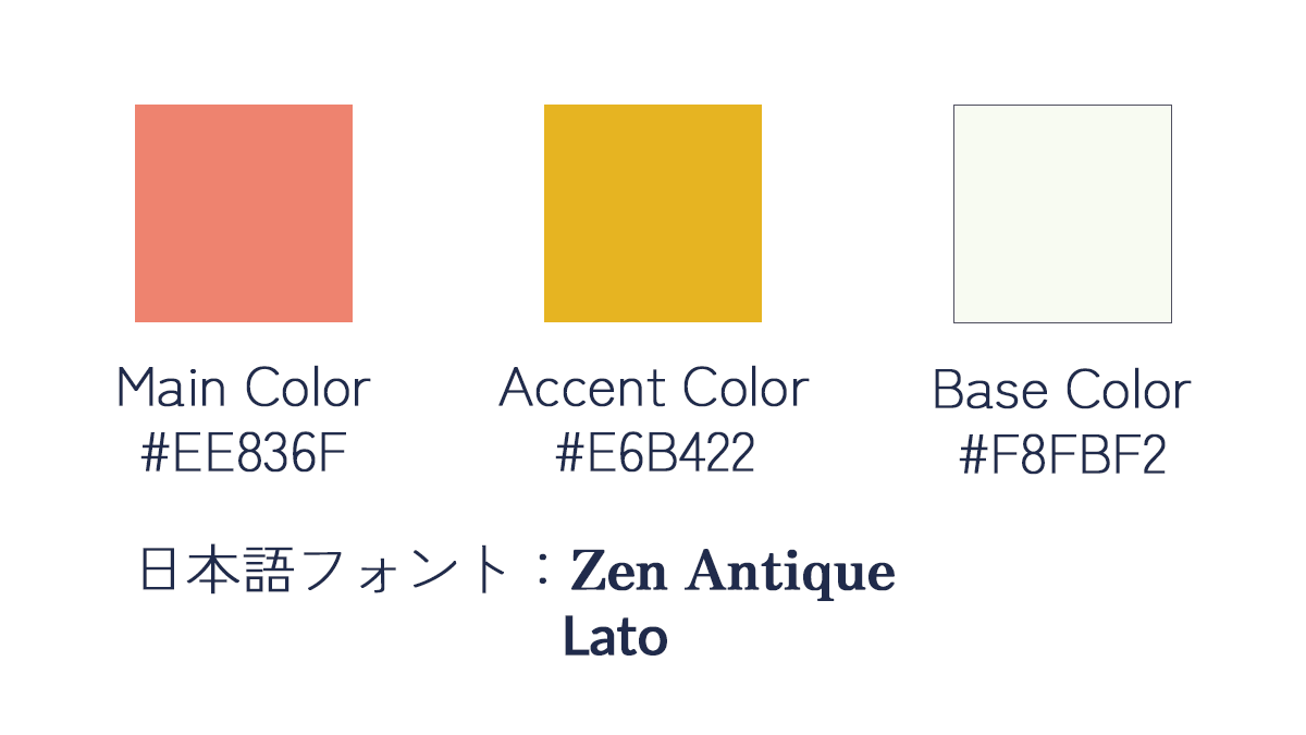 「わくわく」「和」「はんなり」をキーワードに、カラー・フォントを以下のように設定しました。