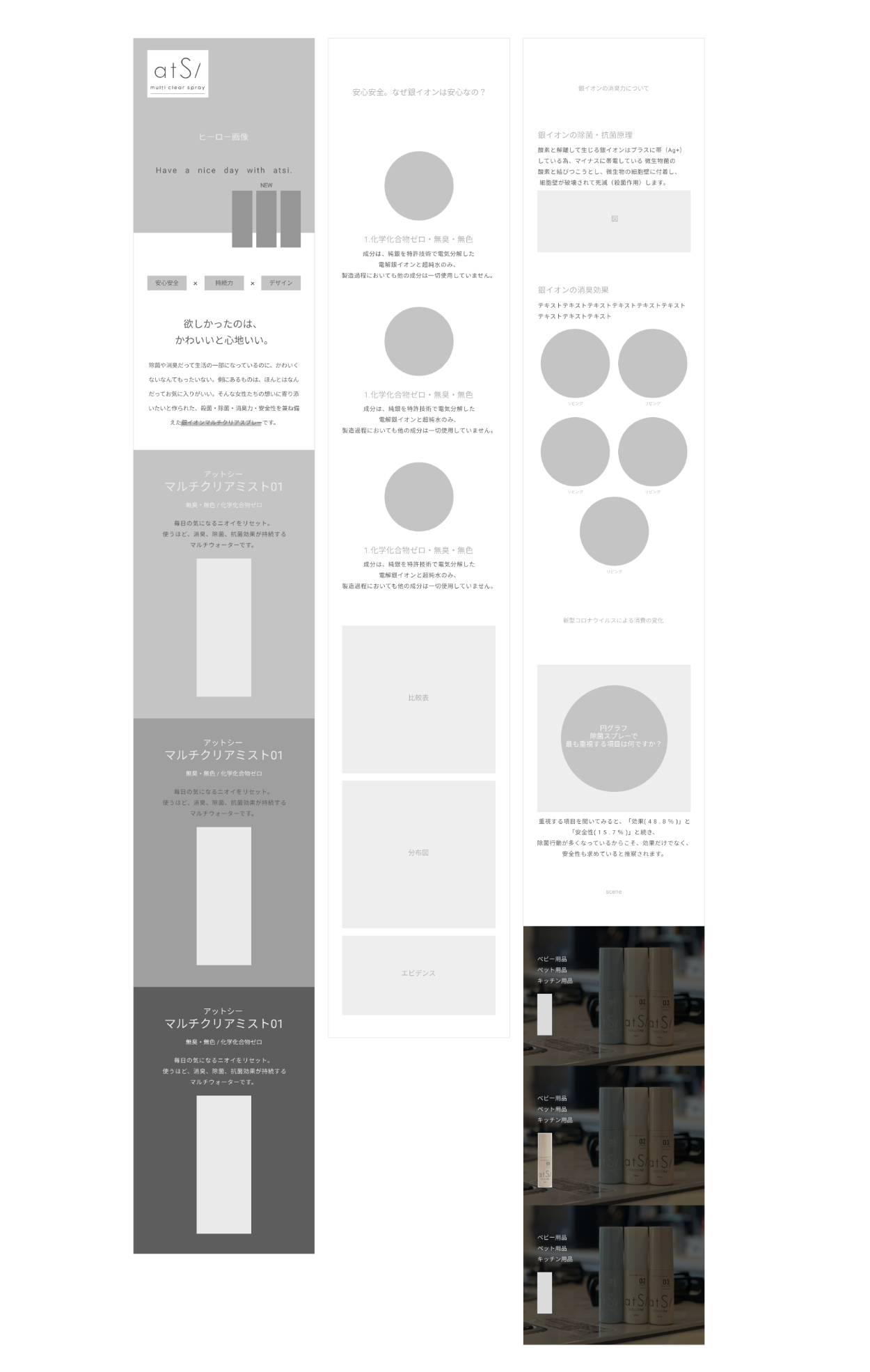 化粧品会社さま LPサイト制作 kumo フリーランス グラフィック・Webデザイナー OVERVIEW 化粧品会社さま向けのご提案でLPサイトを制作しました。 YEAR 2021 Wire frame