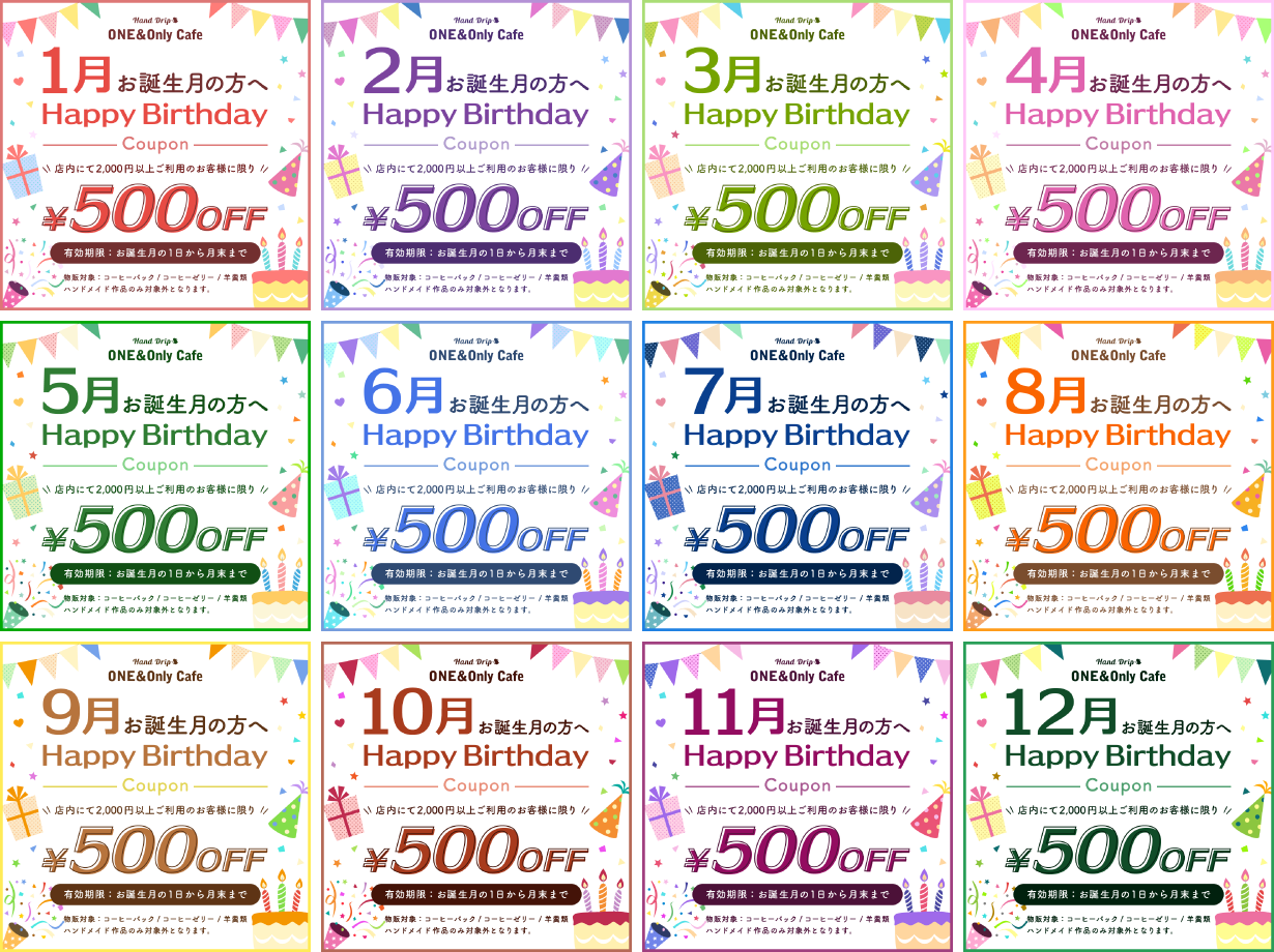 500円/〇月>HappyBirthday>Coupon
