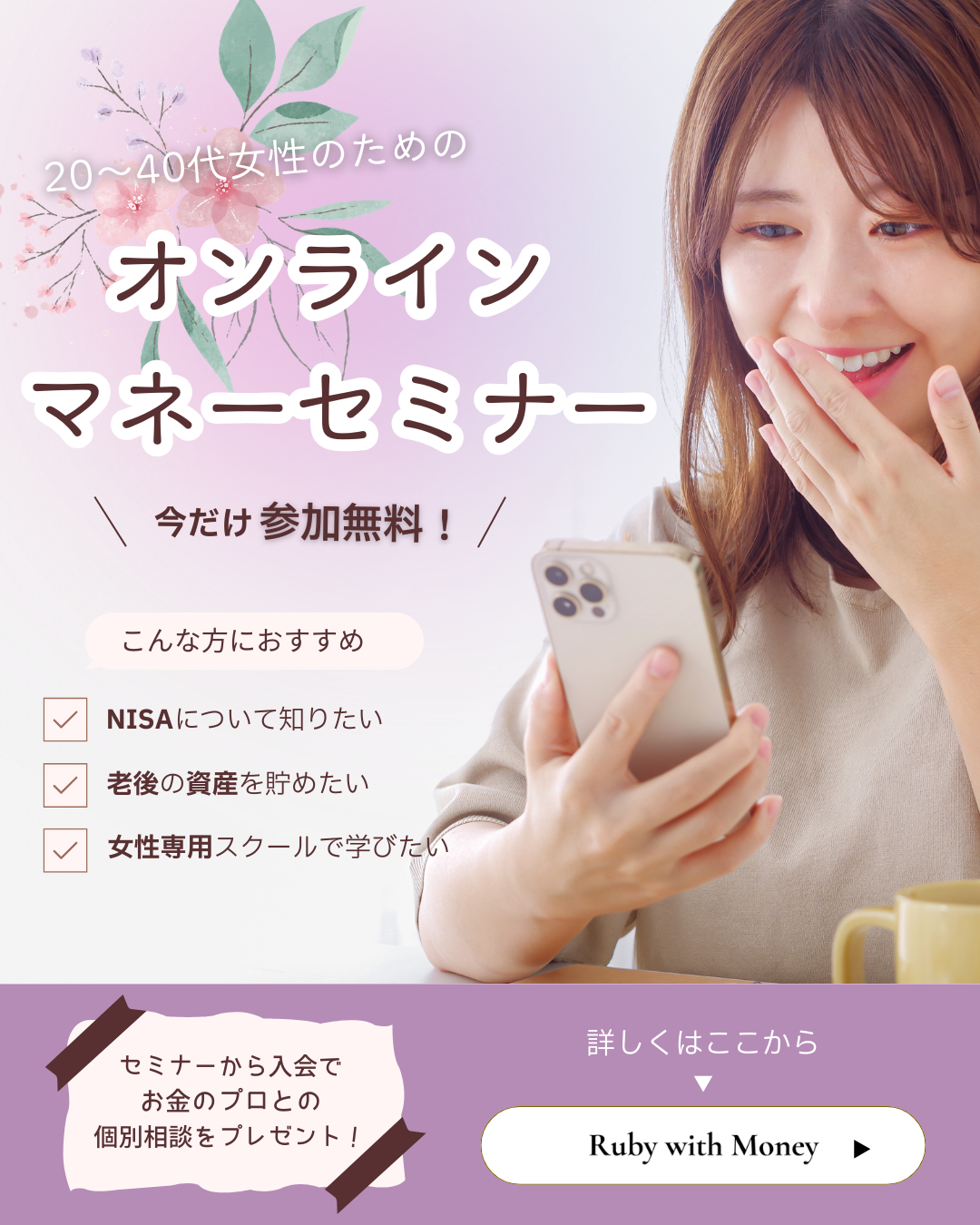 【HerTech 架空案件】 20~40代女性向けオンラインマネーセミナーバナー