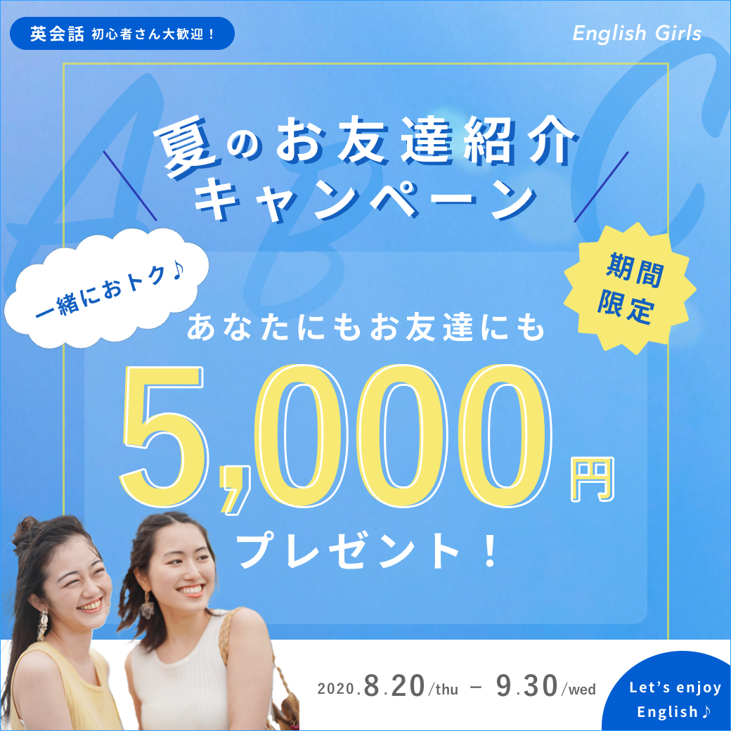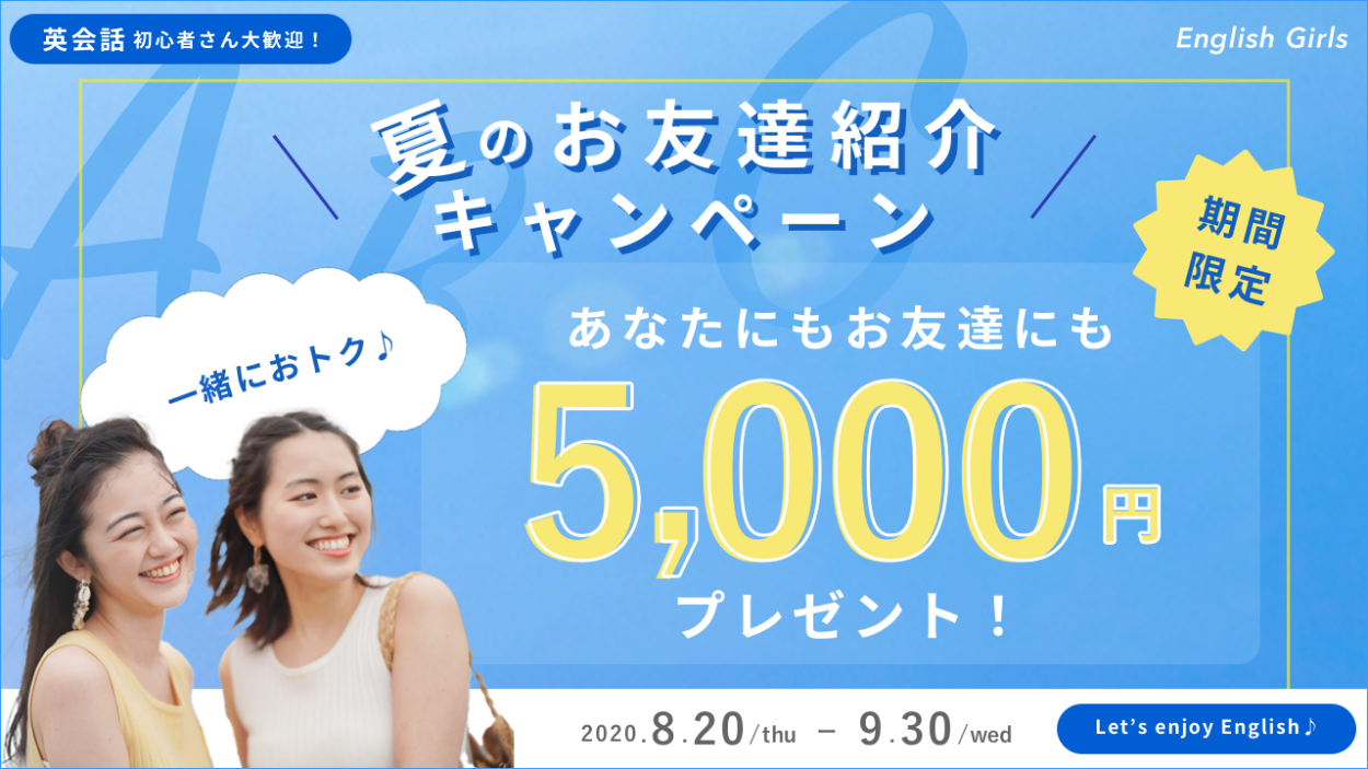 (3)あなたにもお友達にも5,000円プレゼント(4)期間 : 2020年8月20日〜9月30日