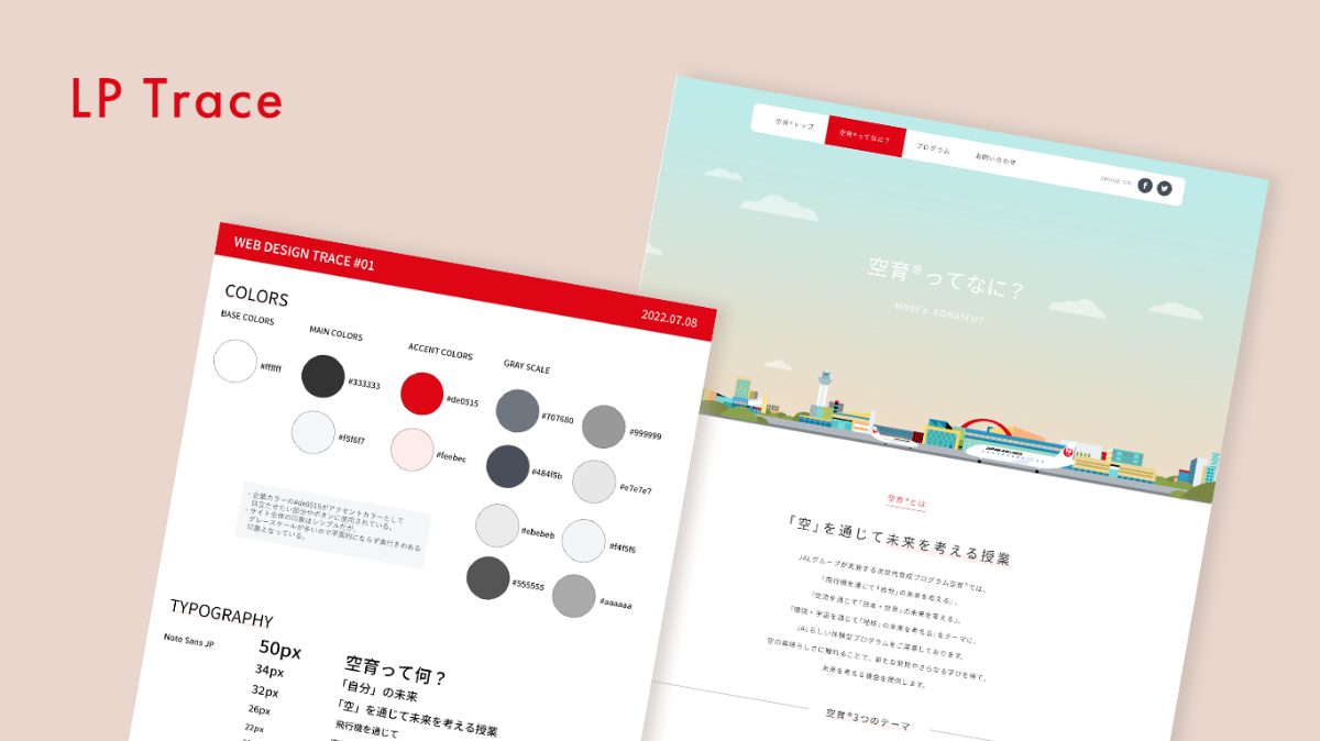 SHE likes MULTI CREATOR COURSEの課題で、LPトレースとスタイルガイドの作成を行いました。また、PCとスマホで異なるデザインやレイアウトの分析を行い、分析結果をまとめました。(制作時間: 12時間/使用ツール: Photoshop)