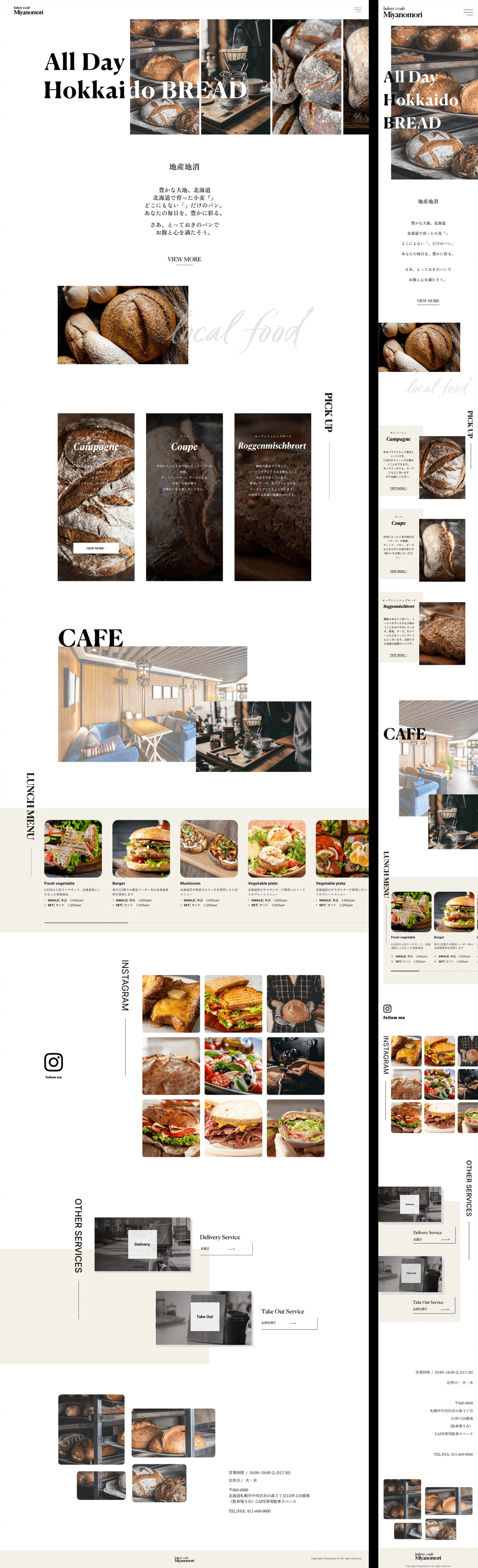 北海道、札幌市パン屋、カフェも営業していると想定しWEBページをデザイン。