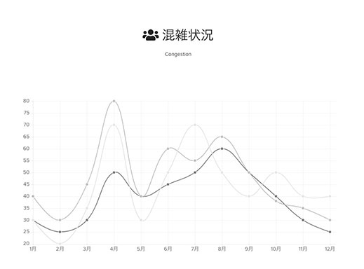 観光スポットの混雑状況を年間を通じてグラフ化することで、より落ち着きのある快適な場所を見つけることができます。