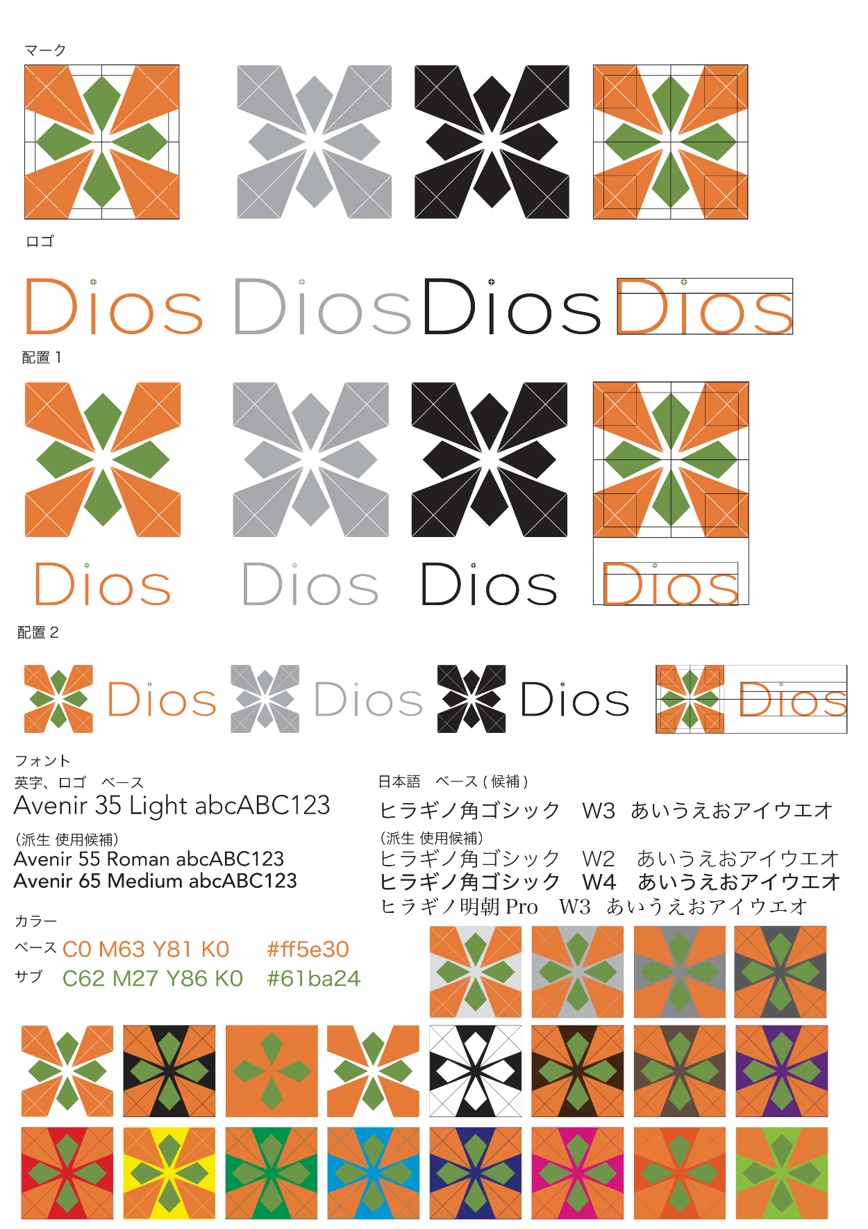 - カラーバリエーション、フォント、パターンをロゴ・マークに合わせて提案