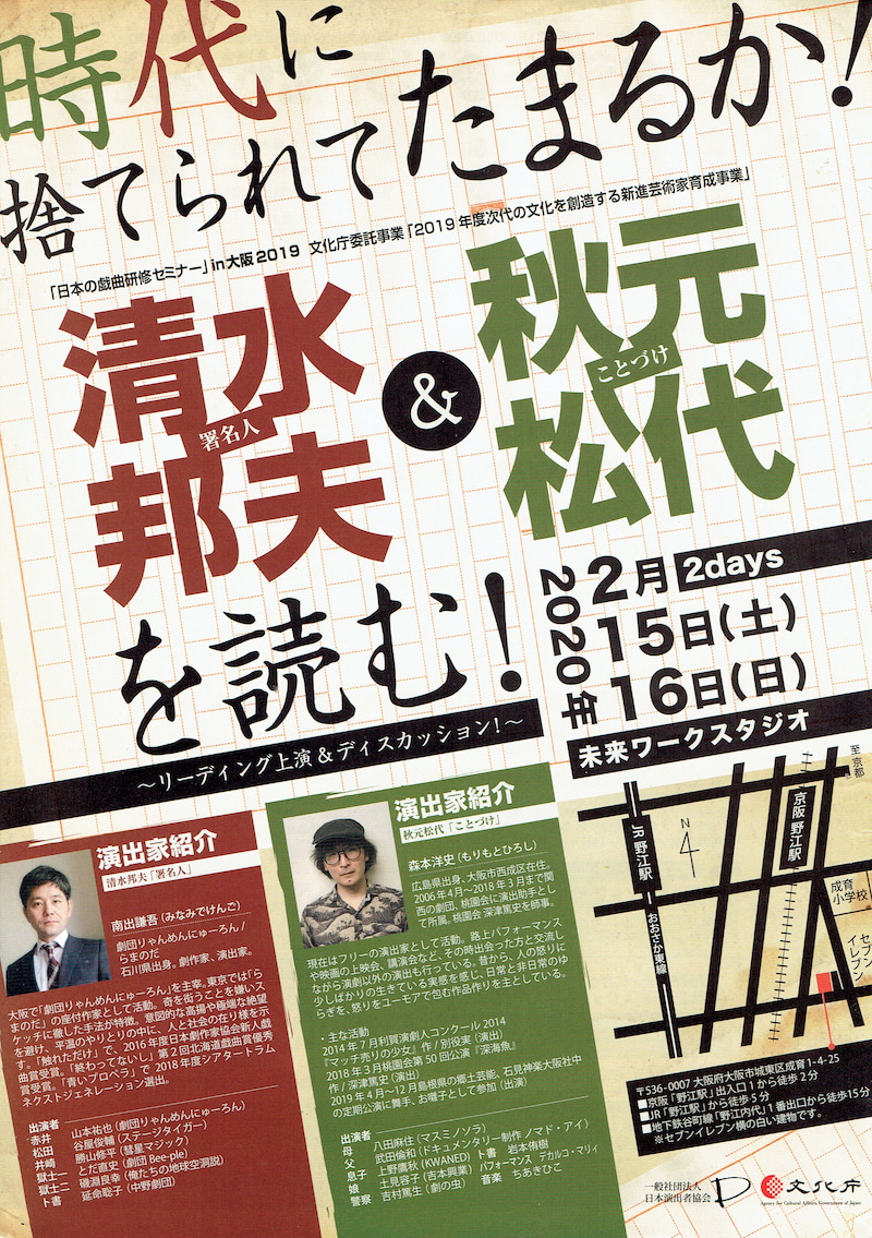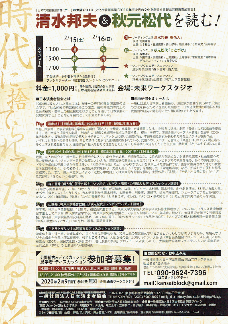 一般社団法人日本演出者協会「日本の戯曲研修セミナー」in大阪 2019『清水邦夫&秋元松代を読む!』