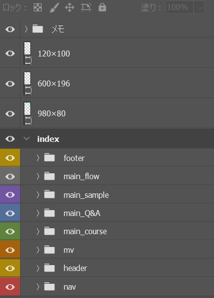 おおよそのデザインを簡易ワイヤーフレーム2枚目の方向で決定し、「SkillUp!!」様の提供サイトマップを参考にしながらindexの必要項目を書き出し。写真素材として、